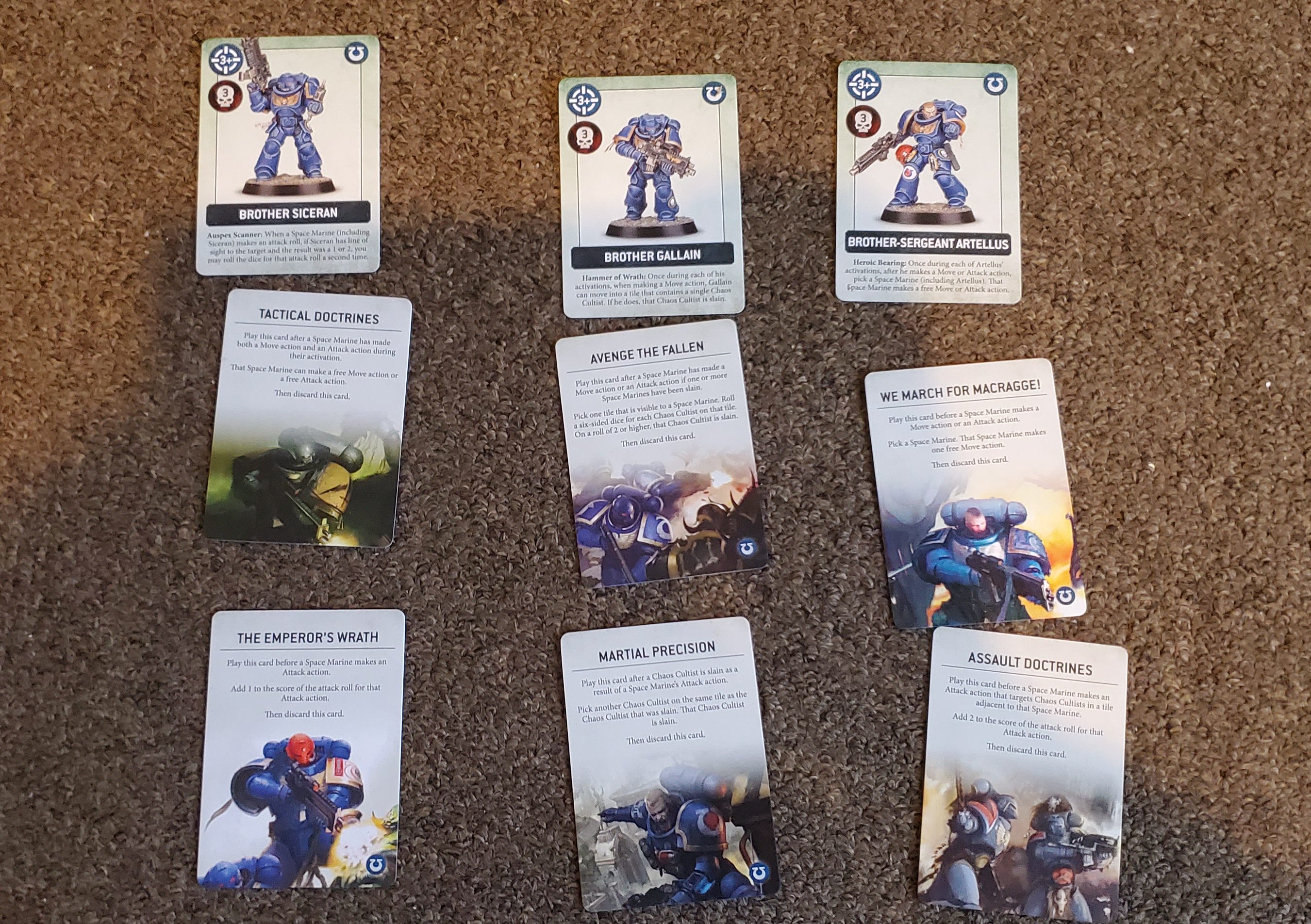 The Player Characters with 2 Wargear cards each