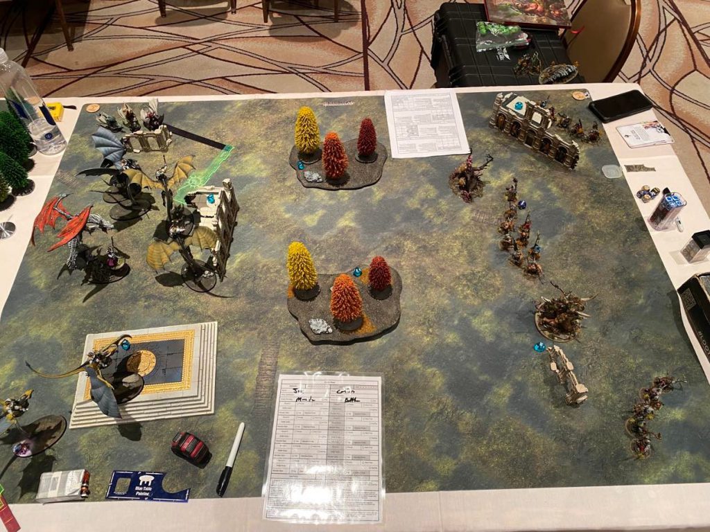 Following close behind that I flew to Pennsylvania for a wild time at Summer Slaughter GT. After learning my lessons from Saga and another month of practice of 3.0 under my belt, My round 1 for my first endeavor in 3.0 versus Morathi, went swimmingly as the Foxes and sentinels took off her ranged shooting to counter me in the first turn and then danced around the remainder of the game with the foxes. Followed by one of the closest games ive had in all of AOS 3 against Deepkin with like.. 8-10 sharks. I do not like sharks, who shoot lots of guns hitting on 3’s rerolling 1’s and wounding on 2’s. LEAVE MY FOXES ALONE… as some might have said. 3rd, 4th and 5th rounds being against Fyreslayers and back to back giants, respectively. They were more combat armies that struggle to pin down wind spirits, and was able to end my first major of the season with a clean 5/0. (This event also kept track of “total units killed all event” for a separate trophy, and the foxes were hungry for it, killing all but 3 total units my 5 opponents had all weekend, but with back to back giants couldn’t quite catch back up. Still a great alternate trophy!)