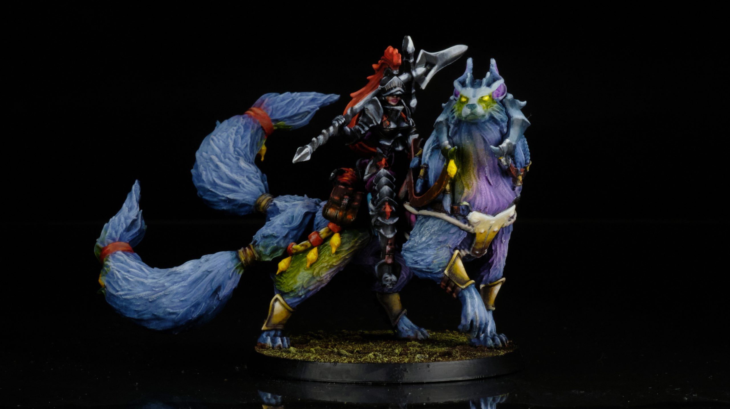 Coalition of Thenion model. For me, this is the standout miniature of the bunch as I'm sure it will be for many others, featuring both a dismounted figure and an option mounted on a huge twin-tailed wolf-lion. She's absolutely