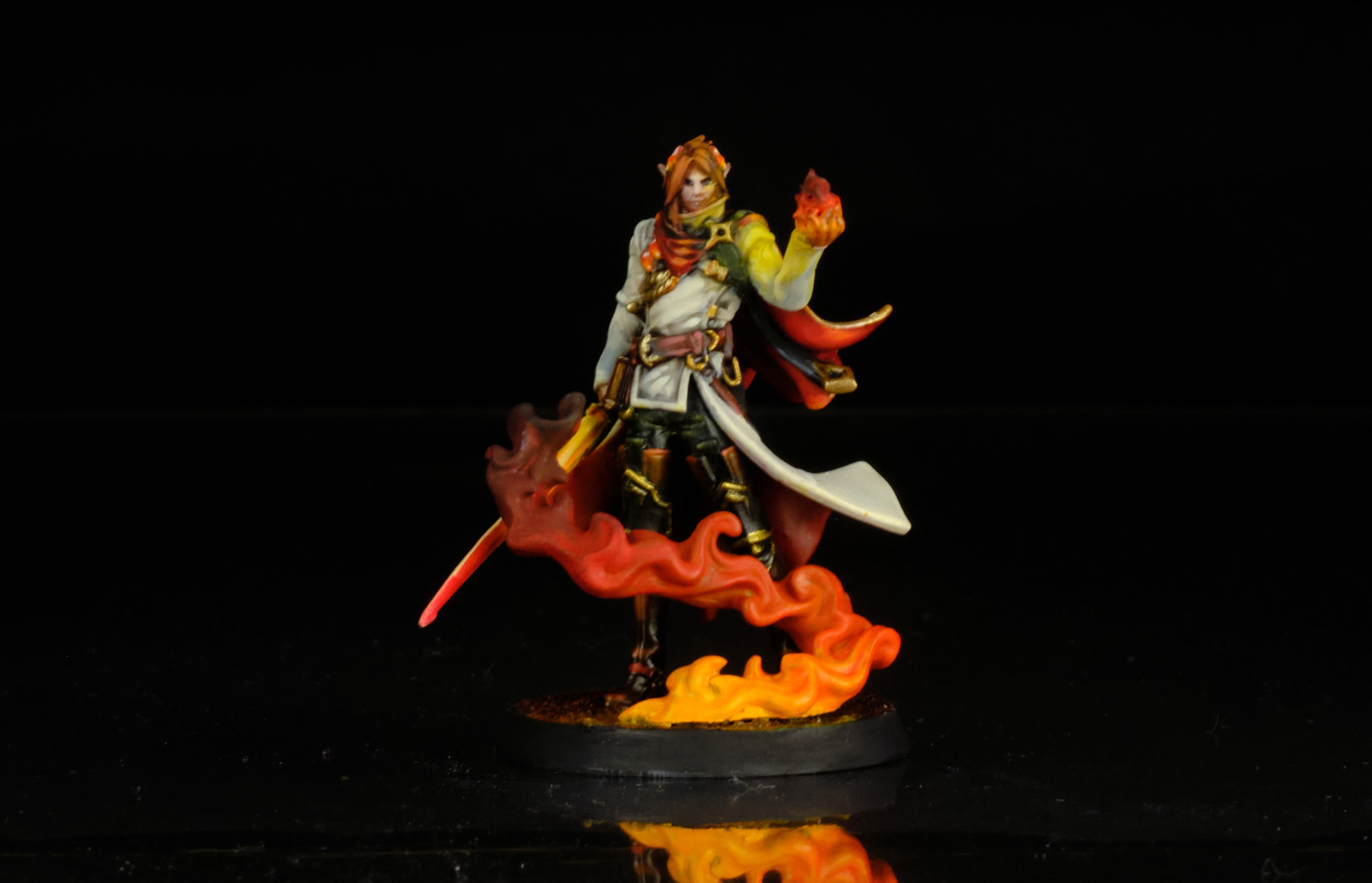 Helian League model, this guy is your classic haughty noble character, from his tight fencing-jacket coat thingy, his thigh-high leather jackboots, to his standard bishonen haircut. The two variants on offer are basically the same, one has a sword while the other has a staff. In terms of painting this guy he was pretty straightforward compared to some of the others, but as with the Spellweaver, you really ought to leave the magic fire/smoke thing off the base, or you're in for a struggle.