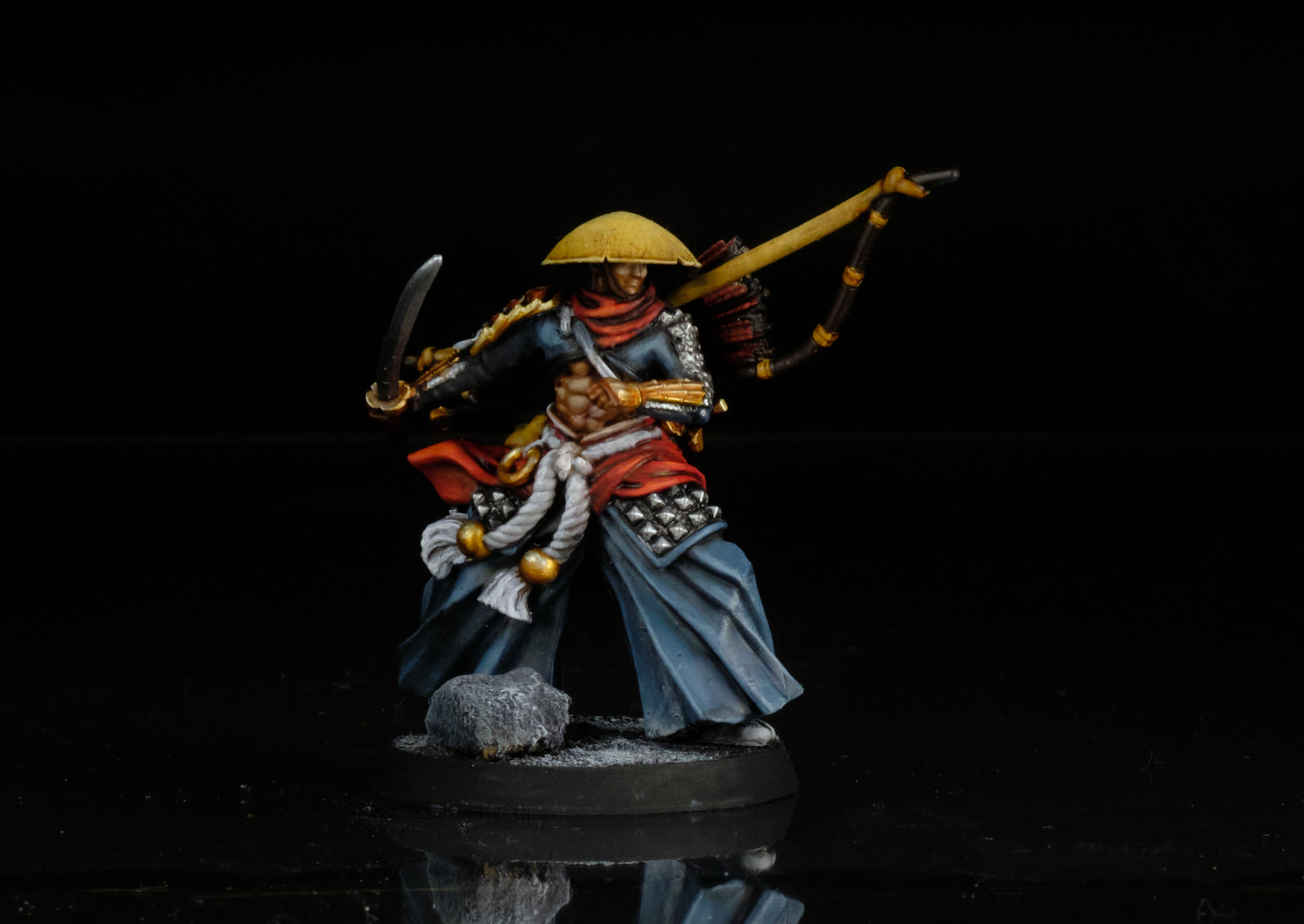 Takuhatsugasa travelling hat, or is bare-headed. While the hat is flavourful and offers a bit of mystique, I think I would have preferred to paint his face, since I love a good face. Well, that's my mistake! I'm not entirely sure but I