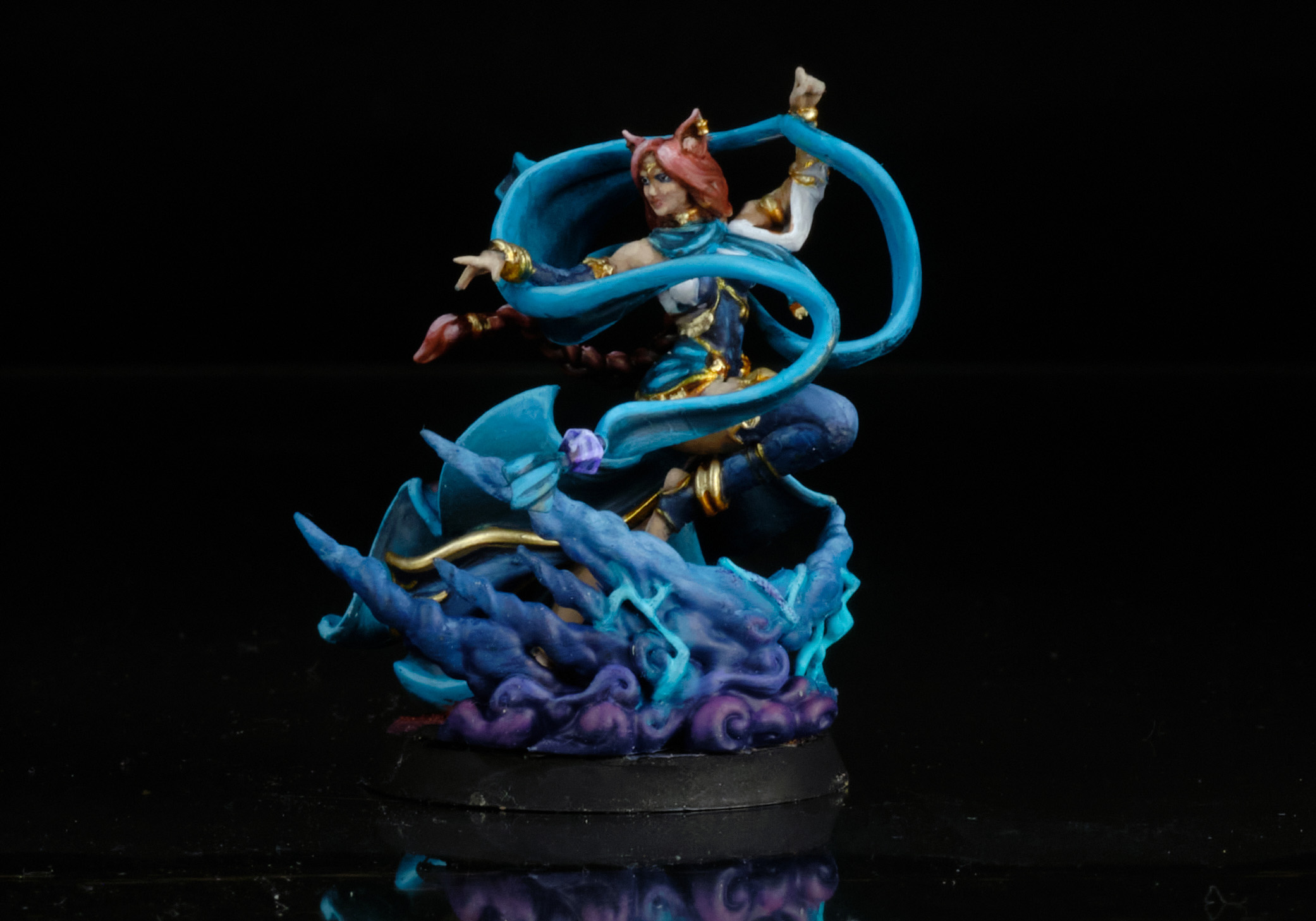 Sand Kingdoms model, the core design concept is very much in line with the other Sand Kingdoms characters, fantasy elements with a strong middle-eastern flavour, this time drawing inspiration from belly dancers, but this one is a catgirl. I'll be completely honest with you, although I really like the ethos, and the way the finished miniature looks, painting it was a real ball-ache, the silk scarf that winds around the model interfered with the brush so many times, I'm almost tempted to say I should have left it off when painting, but that ship already sailed.