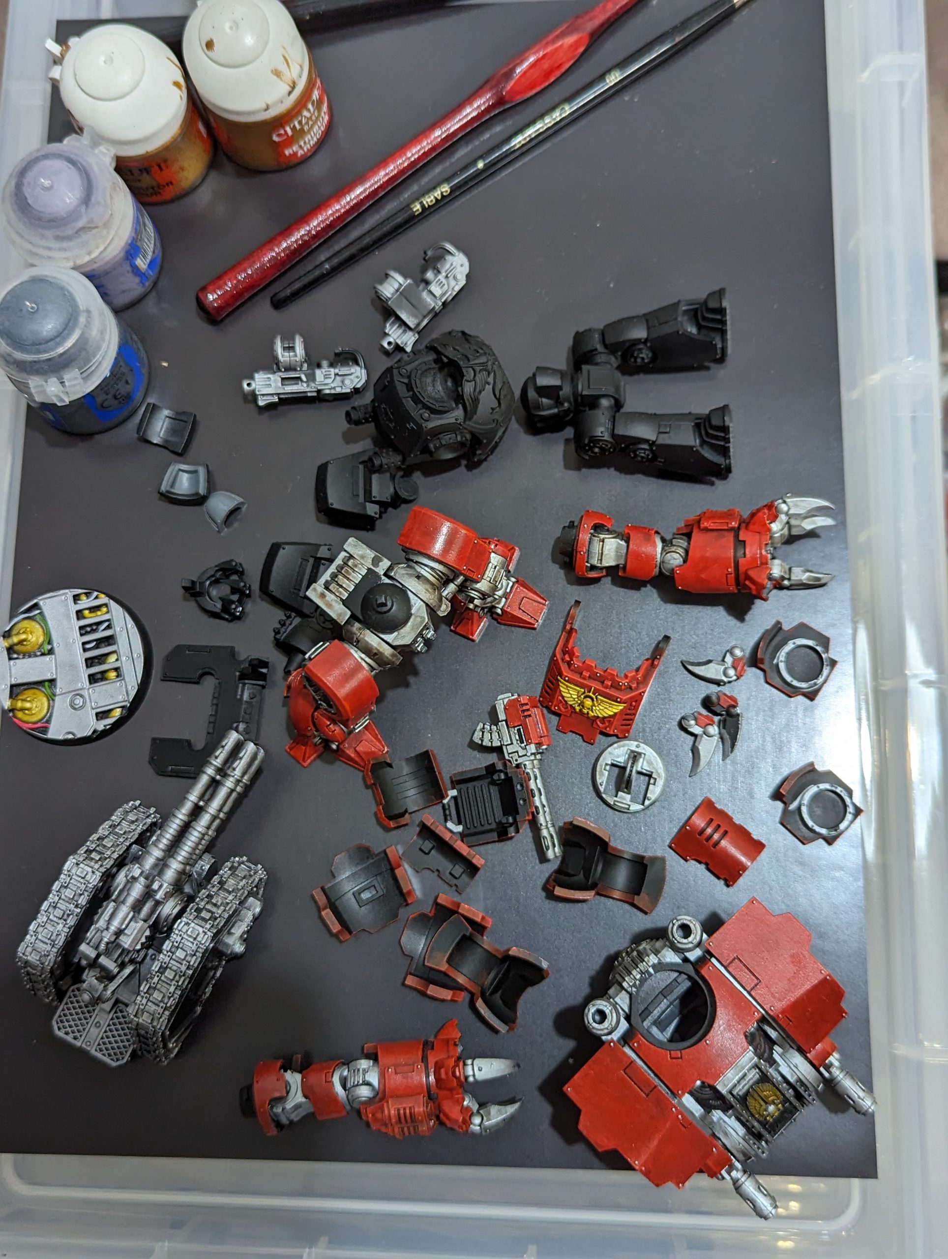 I've mostly finished the Brutalis, I just need to do a bit more detail, add transfers and then paint up a base for it. The Desolator marines I've just not mustered much passion for and while I've built them, they haven't been undercoated.