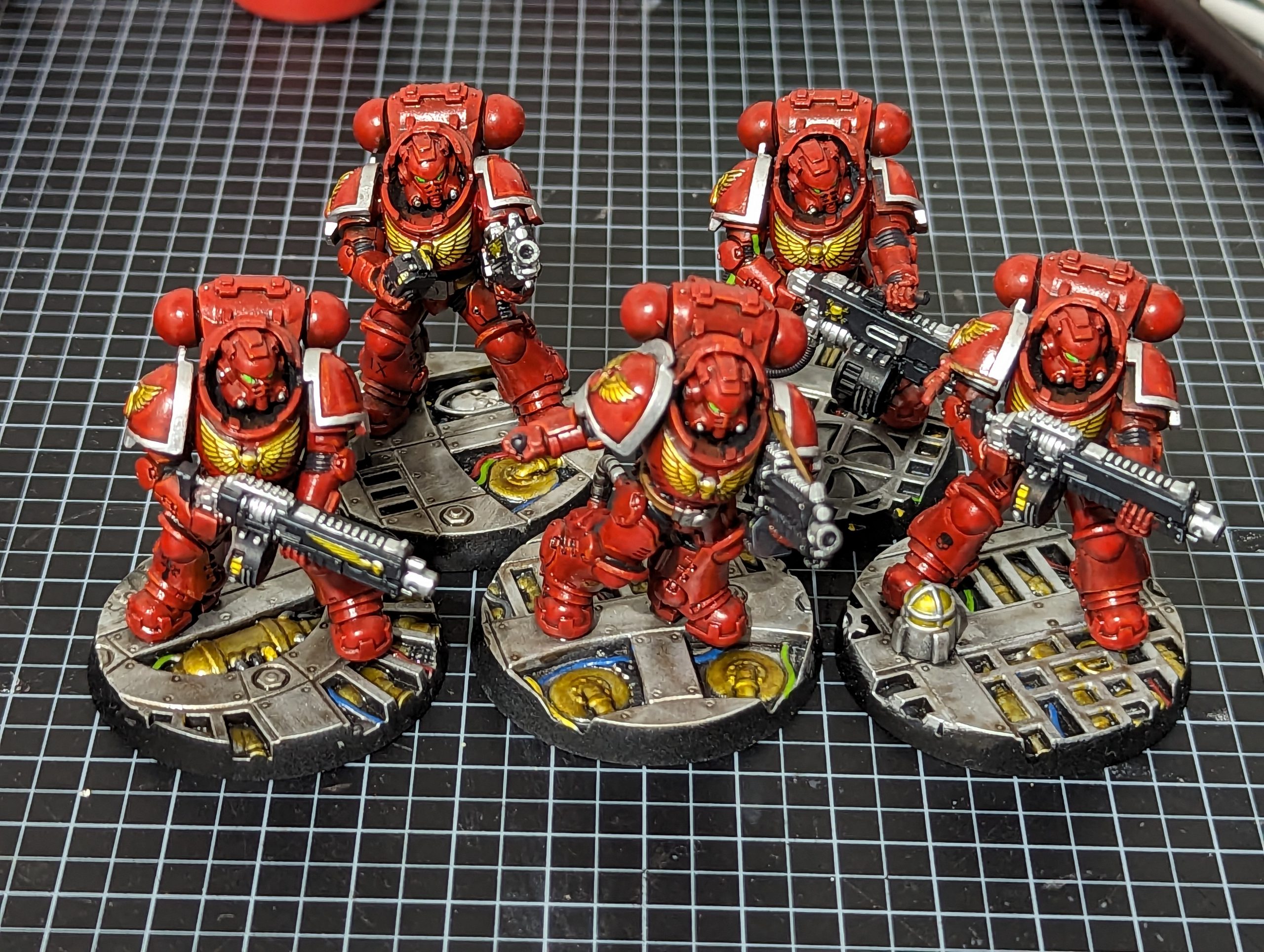 The 5-person Assault Intercessor squad was just a shot at putting some jump packs onto Primaris bodies. I may expand this to a 10-person squad and run them as Vanguard Veterans or something. I think it's frankly criminal that we haven't gotten a good jump pack Primaris kit yet. Just a few scattered single models and Suppressors who still can't be obtained on their own. Like, what?
