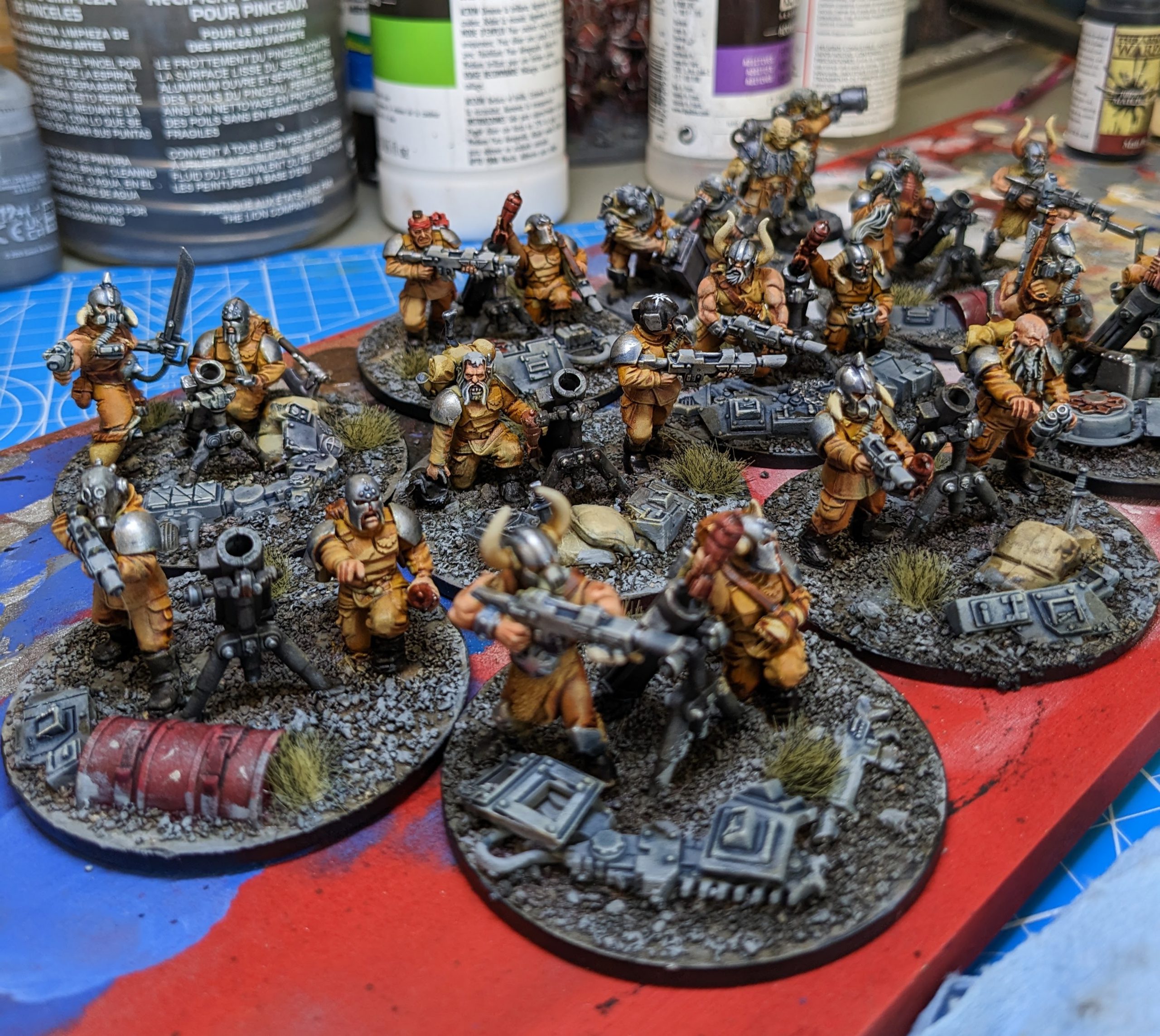 I didn't paint what I'd pledged, but I got 3 squads and 3 characters done, so I'm happy with that.