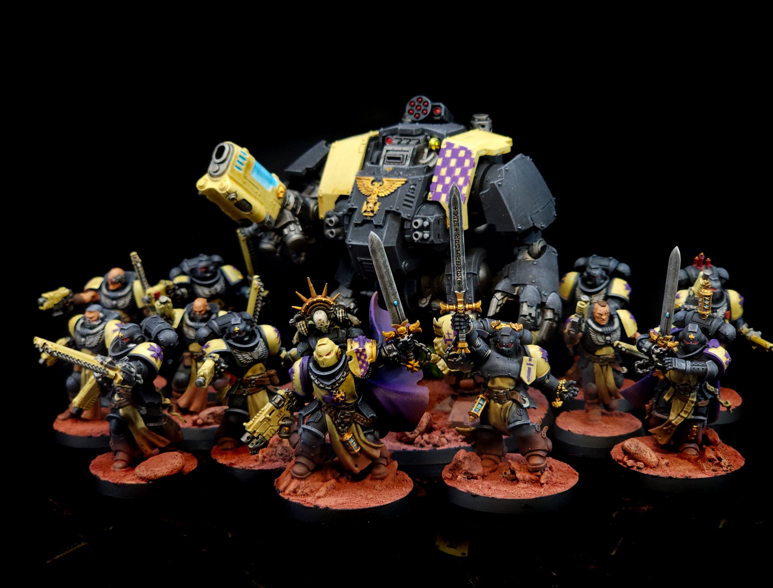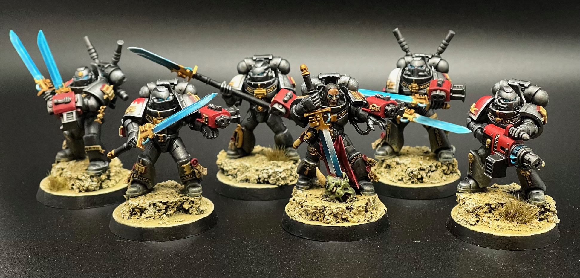 Black Templars get purple trim and cloaks in this force from Alex. The red basing makes the black armour pop, and the weathering and armour scratches gives a lived in feel to the models. We really like the heraldry on these and how they turned out, as well as the dust on the bases. Great stuff.