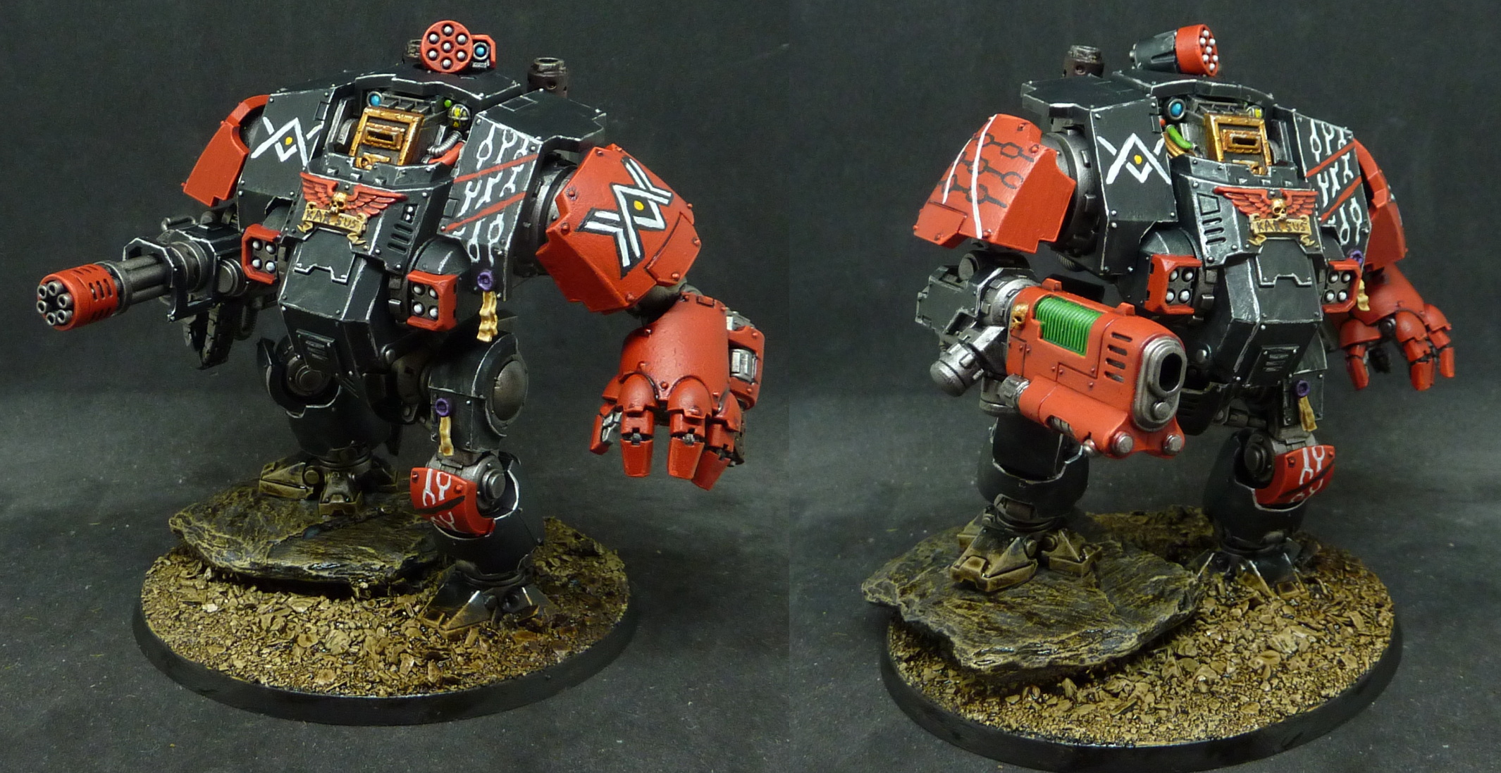 Sometimes you need a big centrepiece model, and for many editions of 40k, dreadnoughts were those models. Red works on this as the accent colour, contrasting nicely with the black, which is a great base for the chapter symbols and markings.