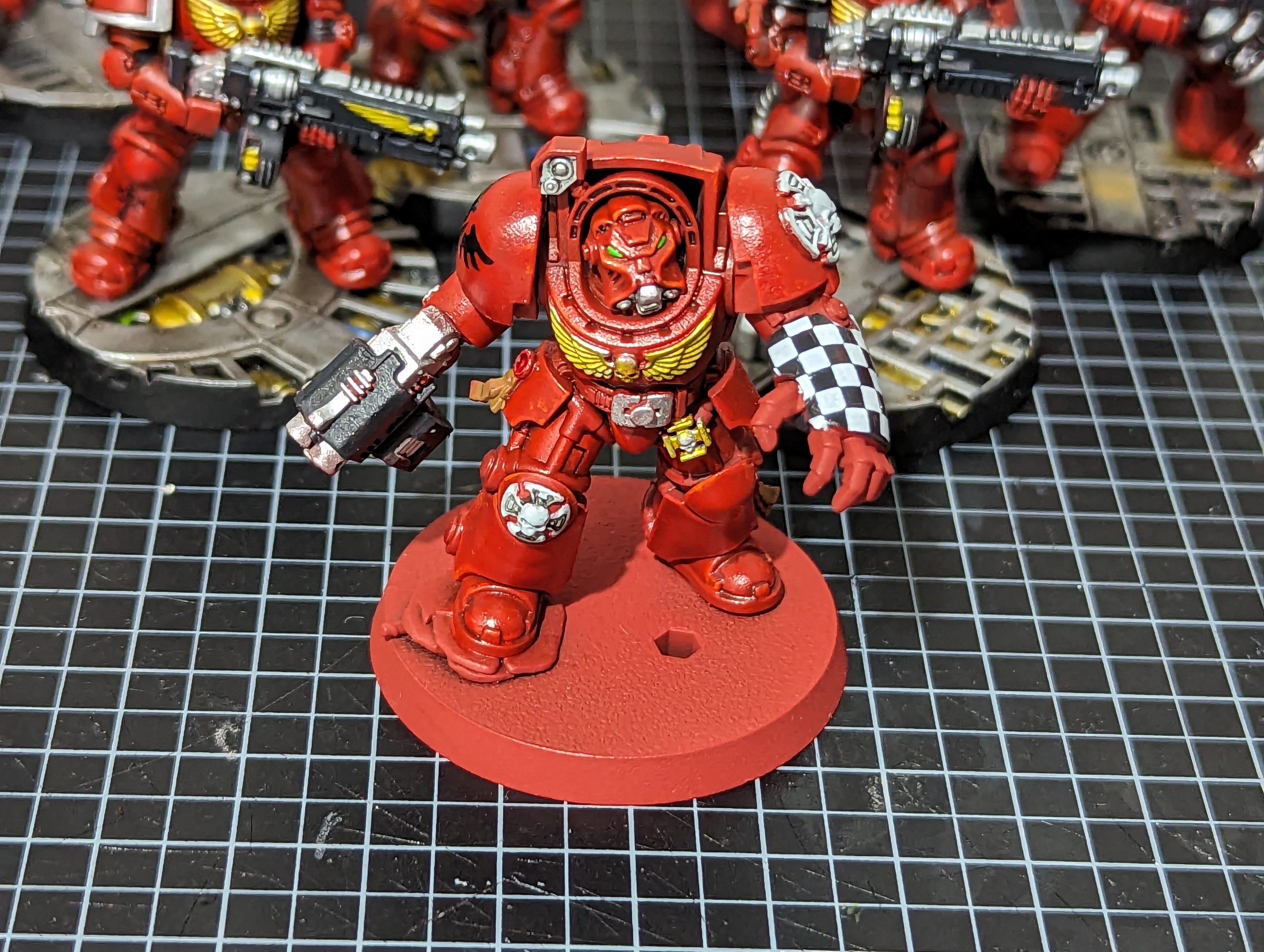 Test models are actually something I'd recommend a lot of people do, especially if they aren't certain or a scheme or how to achieve it (with my own Blood Angels I've vaccilated between the Eavy Metal style and a grittier more Richard Gray style, and the MK6 I've done are painted in the latter). Test models let you see how it will look, try to techniques you are thinking about and see if you'll actually enjoy painting the scheme. So congrats to Vulkans Forge for experimenting and taking a risk.