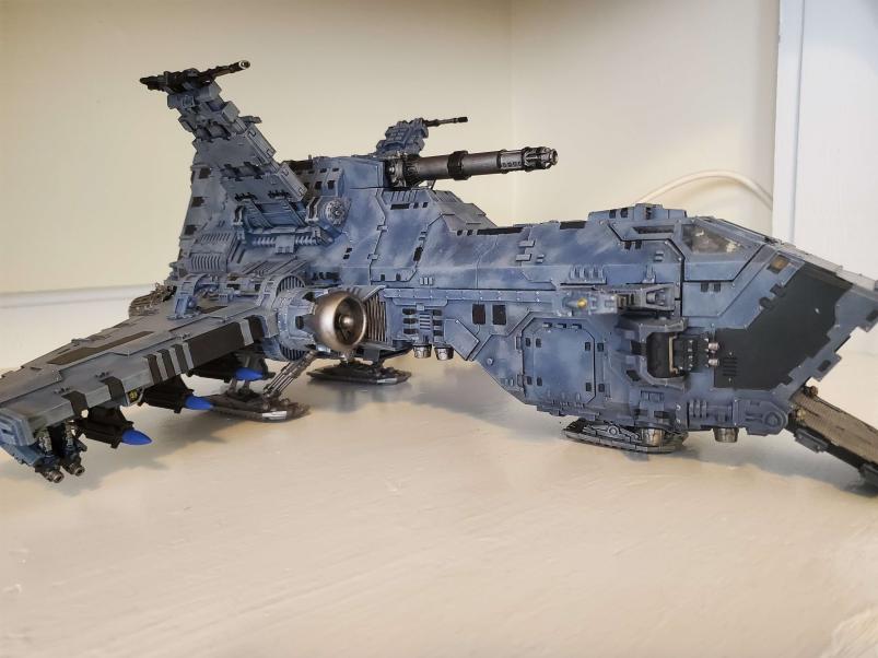 This is the biggest single model submitted. A Thunderhawk. It could probably kill everything else in the competition in 1v1. The subdued blue-grey on this scheme was a good pick, as it mutes and otherwise complex and busy model. The highlights and details are that much more prominent because of the contrast afforded by a simple basic scheme.