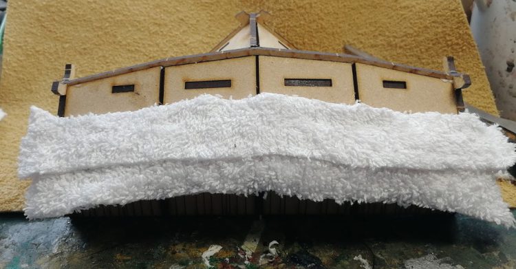 Thatched buildings have a very specific look and feel to them, and there are many different ways of approaching thatching your buildings once you've made them. Some of the most common are using teddy bear fur or various kinds of straw or grass, but in my experience these tend not to result in something that looks like traditional European thatching. The technique I settled upon, which I'll take you through today, instead uses towelling and an awful lot of PVA to get the final result.