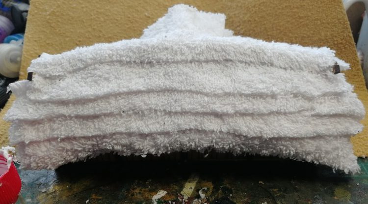 - Some old towels, not too fluffy. You really want cheap ones and I picked up a bunch of hotel surplus for this specific purpose - cost me about £10 for more towels than I'll ever use. As little stitching as possible is ideal, because you don't want to be using those sections