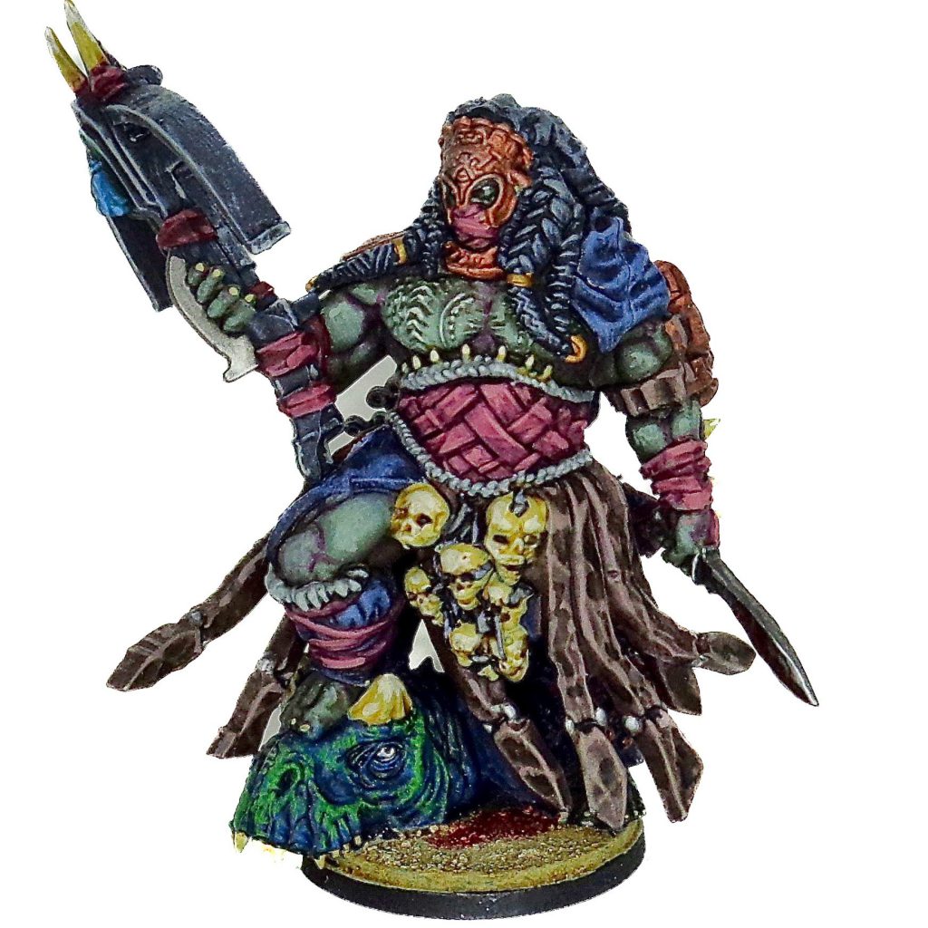 The big bad monster character of W'adrhŭn, and boy is she scary. The combination of traits between the Matriarch and the Apex predator creates a perfect harmony of tank, beatstick and buffer. You pay for it though, seeing as she costs almost half your army in a 1000 point game, but any objective you point her towards, you will almost always win.The Apex Queen lost her ability to give two orders and the Keratin deposit rules, but consider that your Loyalty ability applies to a giant murder lizard instead of the queen’s retinue.With a total of 23 wounds and no damage from resolve test, the Apex Queen might just be the hardest to kill model in First Blood!