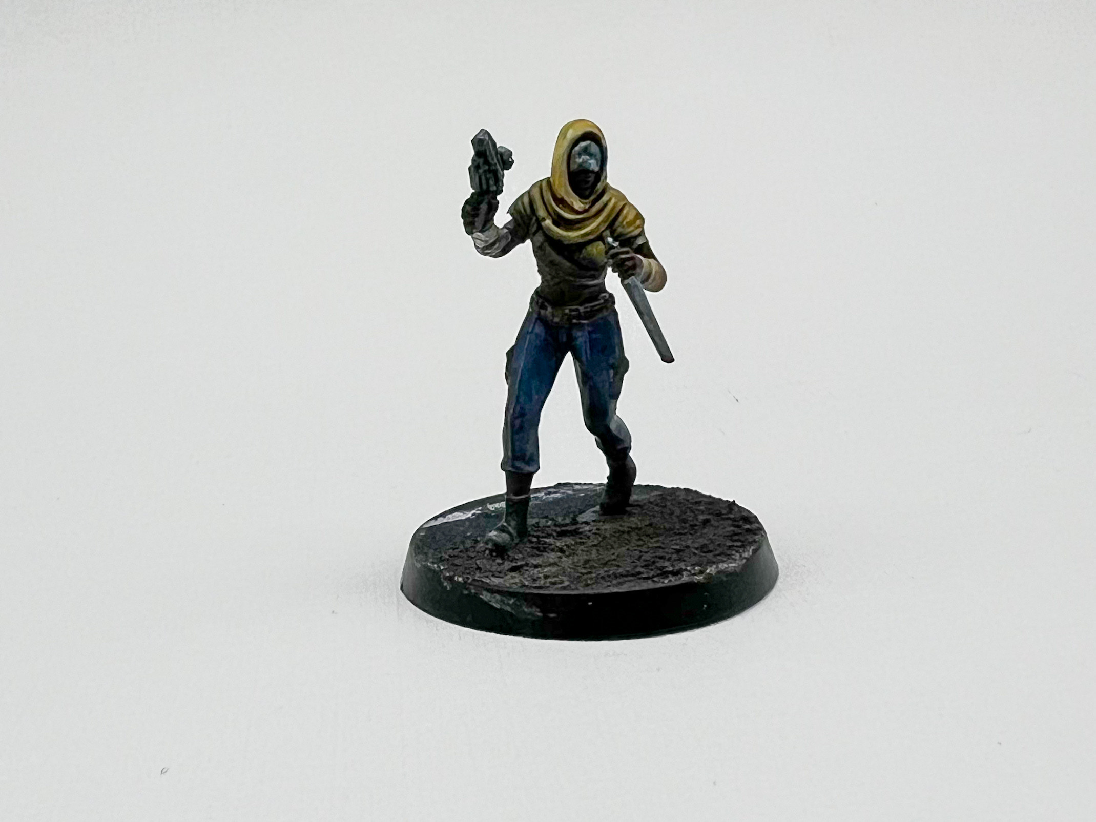 The in-game lore of the Disciples is followed very faithfully in the model design. There are very few men in the gang, with only 1 sculpt out of 10 being obviously male, and the other 9 being either clearly female or ambiguous. Everyone in the gang has the signature hood and metal mask on, with several different mask designs that give some variety to the sculpts.
