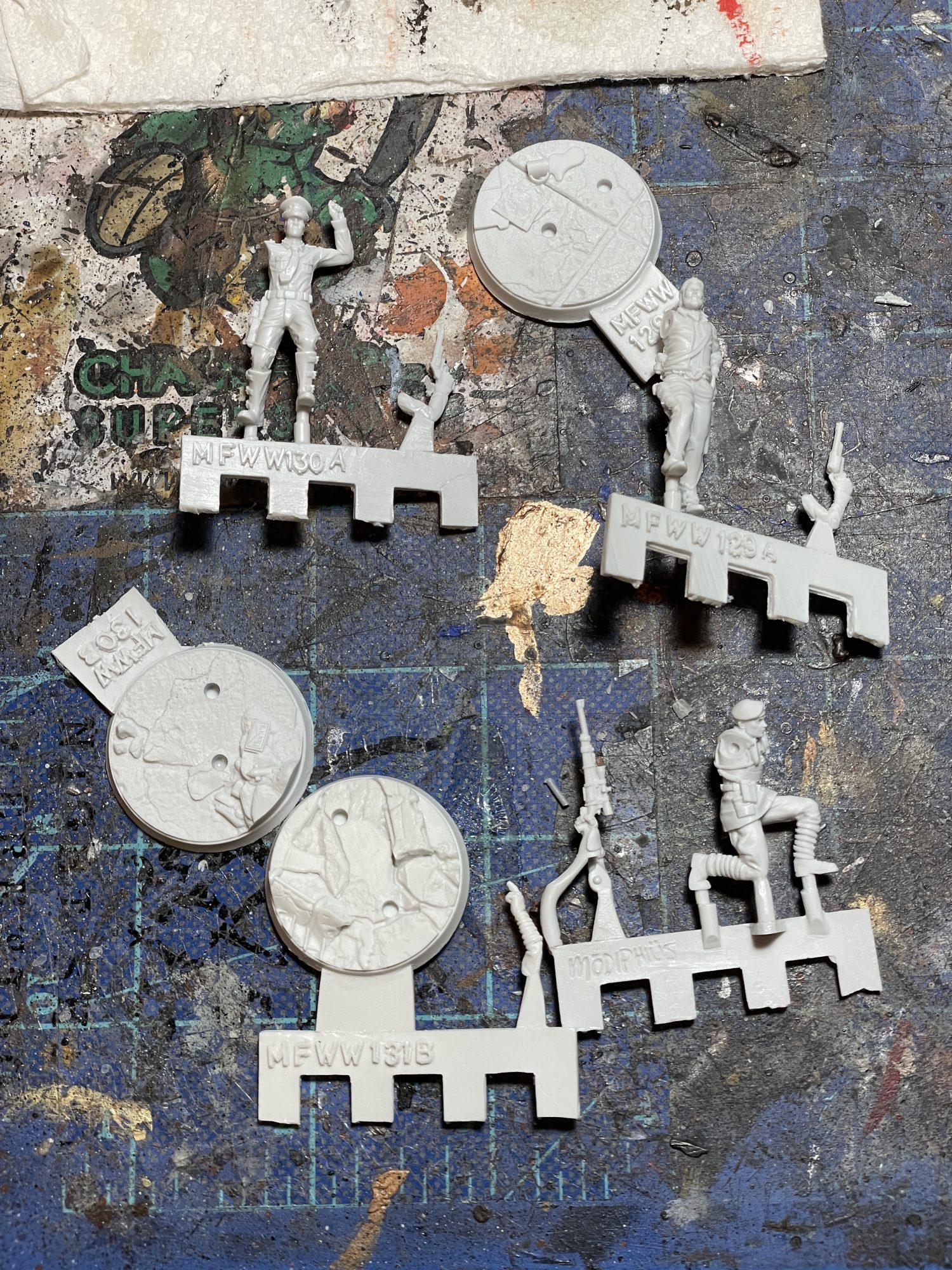 With these pieces cleaned up, assembling the models was a breeze. The only way they could have been easier to put together would be if they were plastic. There was a little ambiguity regarding which side Lt. Gorobets should be facing on his base, but I used the box art as a reference. It's telling that no instructions were included in this kit, and that none were needed. Their bits are all grouped together on their sprues and they generally only fit together in one way.