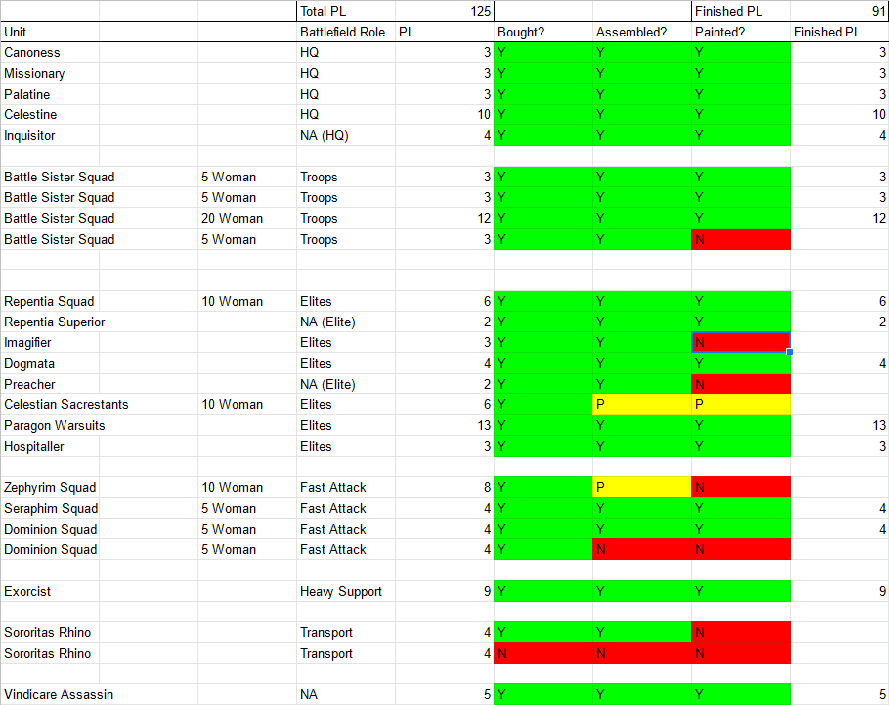 That big block of sisters basically allowed me to fill out the 20 woman squad (Stealing a few bolters from one other squad to fill it out,) as well as complete a Dominion Squad, Dogmata, and Celestine herself. That gives us a score for the 'week' of...