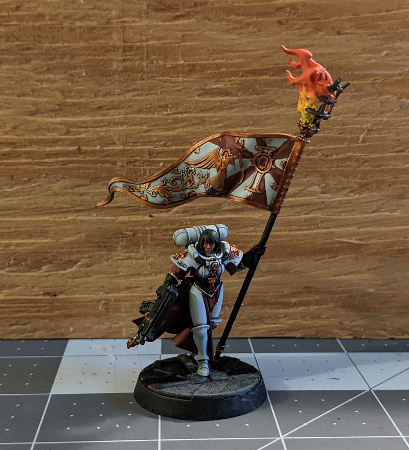 I also managed to get in a quick 50PL warmup game against fellow White Armored Sororitas Owner Greg N. He was shamefully playing his Eldar. His shameful, absolutely beautiful eldar, which I forgot to take pictures of in this game. We rolled up the Recon Patrol mission (In which half your units are forced to be strategic reserves.) and it was a bit of a clusterfuck. He was successfully pushing me back early on in the game, but some good luck with multi meltas managed to down a few smaller vehicles, and then when repentia, canonesses and dominions started showing up in random spots the eldar quickly started to dwindle. Still, when we did the math at the end, it turns out I only won because my flamer squad of Sisters managed to successfully kill two shining spears in overwatch, then have the Sister Superior survive to hold an objective in the subsequent turn. (This became a bit of a theme over the weekend for them) Overall a great game against a great opponent with a beautiful army. (Also a running theme.)