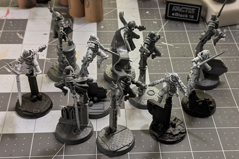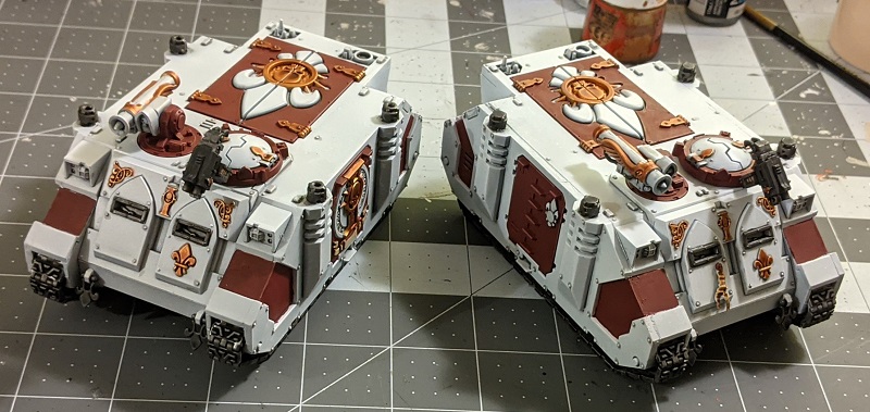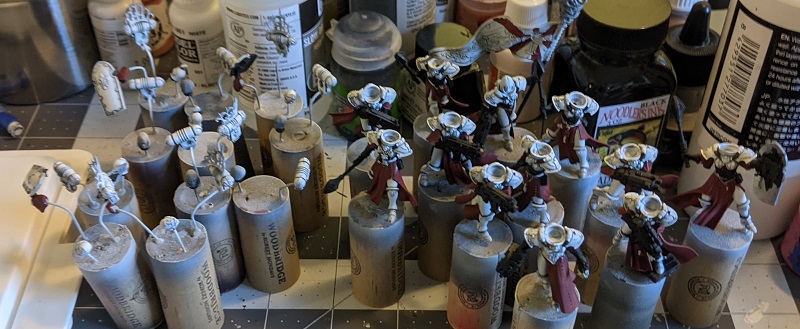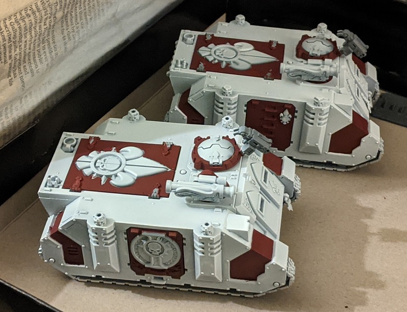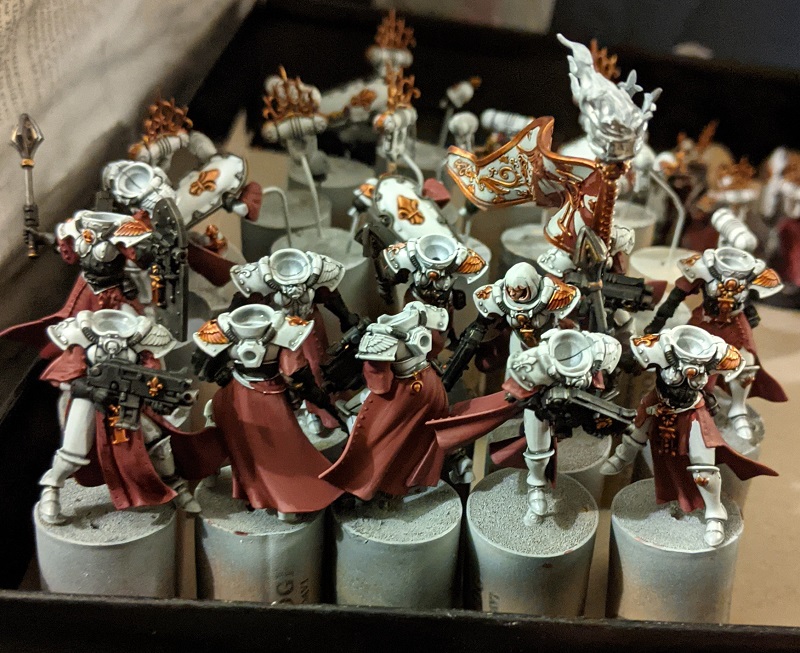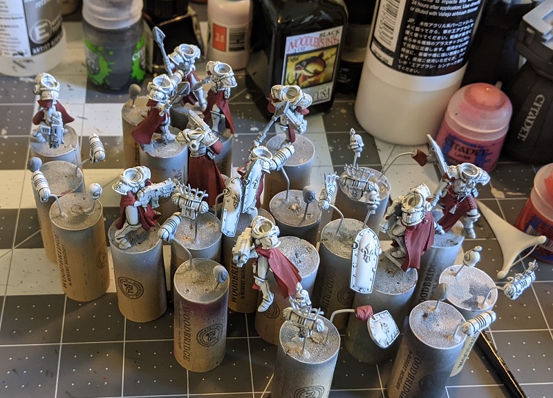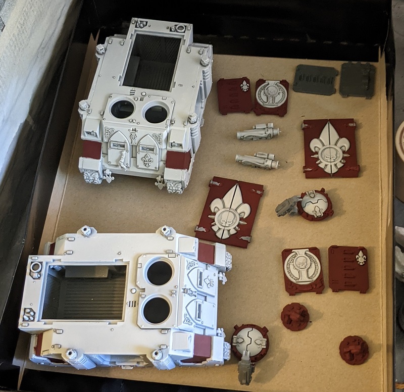 NOW I got to working on the last models. First up on the chopping block was assembling a second rhino, 6 miscellaneous infantry to fill out some various squads, and 5 more Celestian Sacrestants to bring that squad up to 10 models. I put them together in the first half of the week, then got to painting.