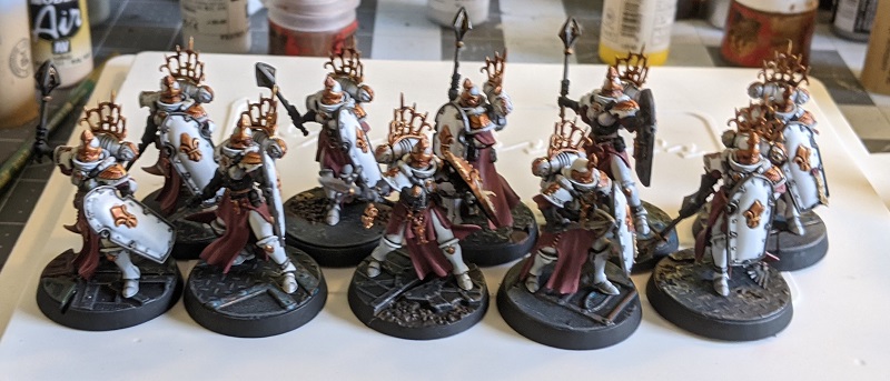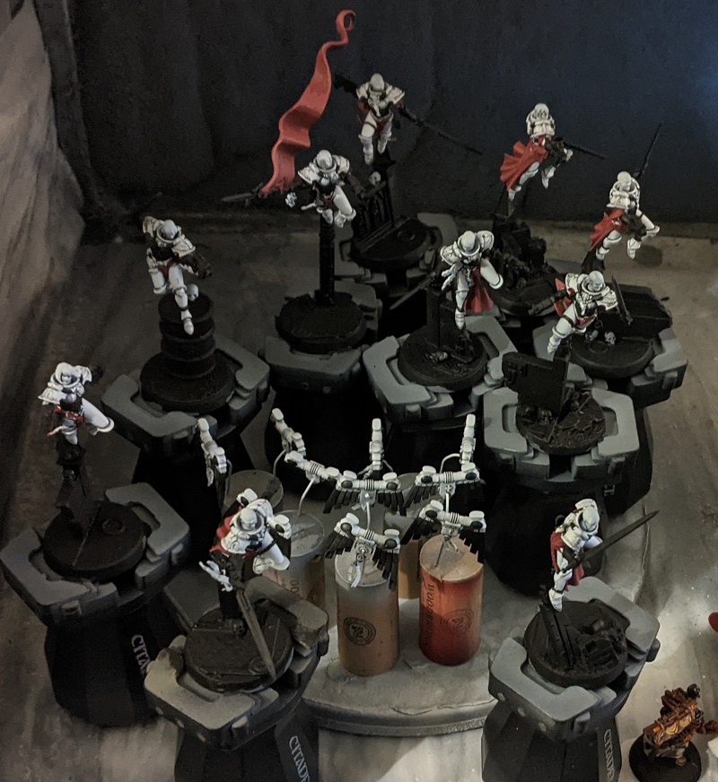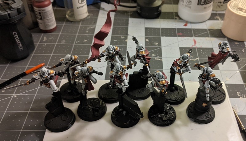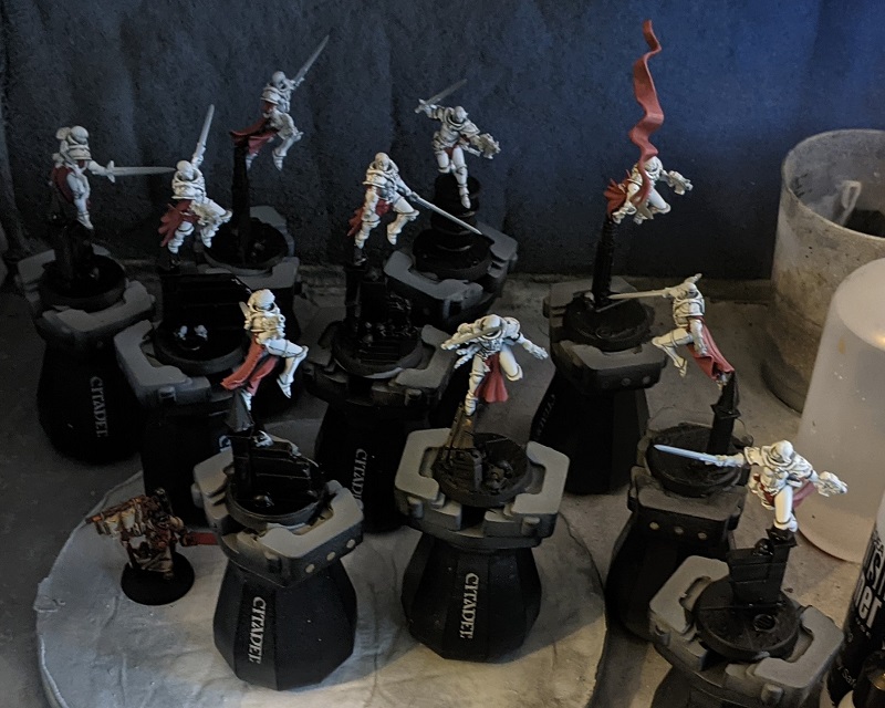 Well, getting tight. The units still needing completion are a unit of Zephyrim and the preacher I converted up. At this point I made the executive decision that the preacher wasn't getting painted. She's a really cool conversion I really want to put the time into to do justice, and that just isn't happening on this schedule. Instead I swapped in a unit of Death Cult Assassins I'd already painted. That brings me up to 124PL total, and I plan on giving my Canoness Word of the Emperor at some point along the road, which will bump her up by 2 PL anyways, so no big deal. Just the 10 Zephyrim to paint and we're golden!