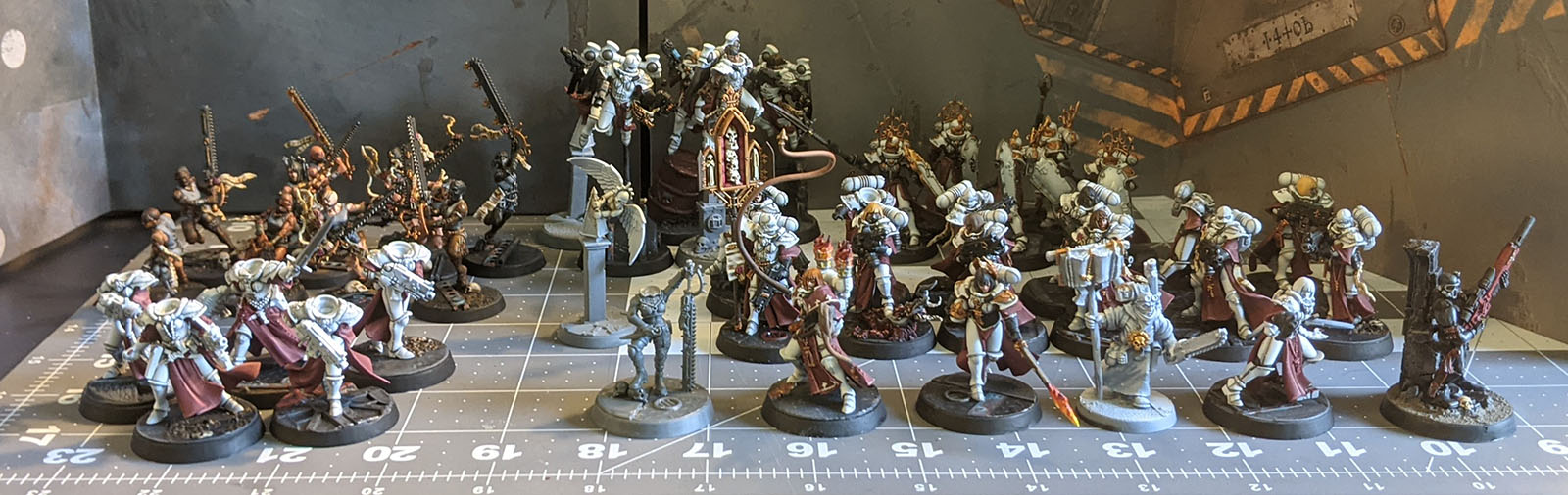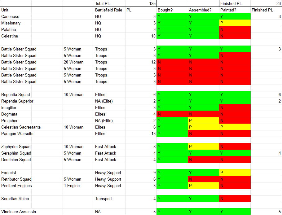 I started the week off strong by finishing up a partially painted squad of Sisters and my converted Palatine. Another 6 PL on the scoreboard!