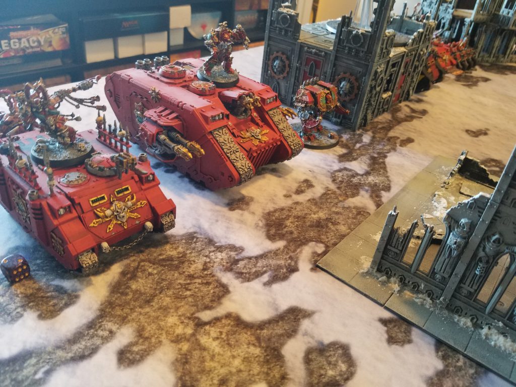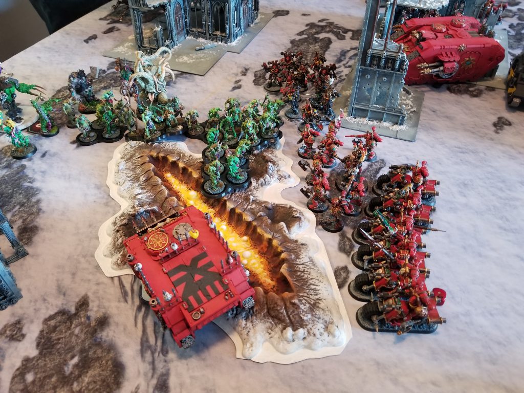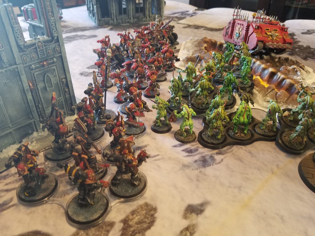 All three of my Berzerker Squads went into Rhinos, while the Terminators sat in their Land Raider, ready to rumble up the table. My goal was to get in some first- and second-turn charges if I could, and hopefully whittle down the Plaguebearers before confronting them head-on.