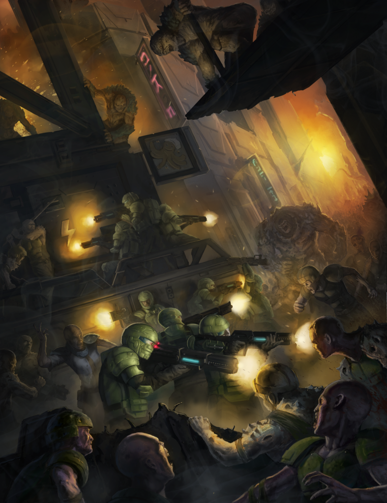 The Warpath Universe is the setting for Mantic’s sci-fi games. It is set in a dystopian far-future where humanity is dominated by an all-consuming capitalist culture that will not stop until it has exploited every last resource in the galaxy. The area under the control of this entity - commonly called The Corporation - is called the Co-Prosperity Sphere, consisting of hundreds of thousands of settled worlds and untold amounts of wealth. The Corporation is lead by the shadowy Council of Seven - the owners of the major sub-corporations and subsidiaries that make up the hydra that is The Corporation. Opposing them are other corporations eager for a larger share of the pie, dissident humans yearning to breathe free, ancient aliens who do not want to go quietly into the night, and mutant horrors who want to exploit life for their own gain.