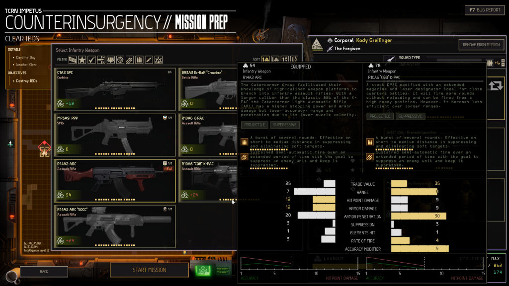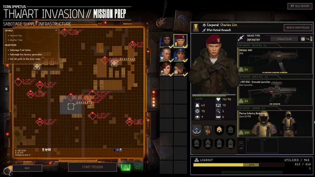 what's there. In the full game, your Intel can be much better or worse. To take a 40K analogy, good intel means you'll be list tailoring with total knowledge of the board and enemy force. Bad intel leaves you deploying ass-blind and hoping for the best. It feels palpably real and gives the pre-mission screen so much life beyond gear choices. It immediately makes you feel like you're commanding a crew of professionals who are invested in success.