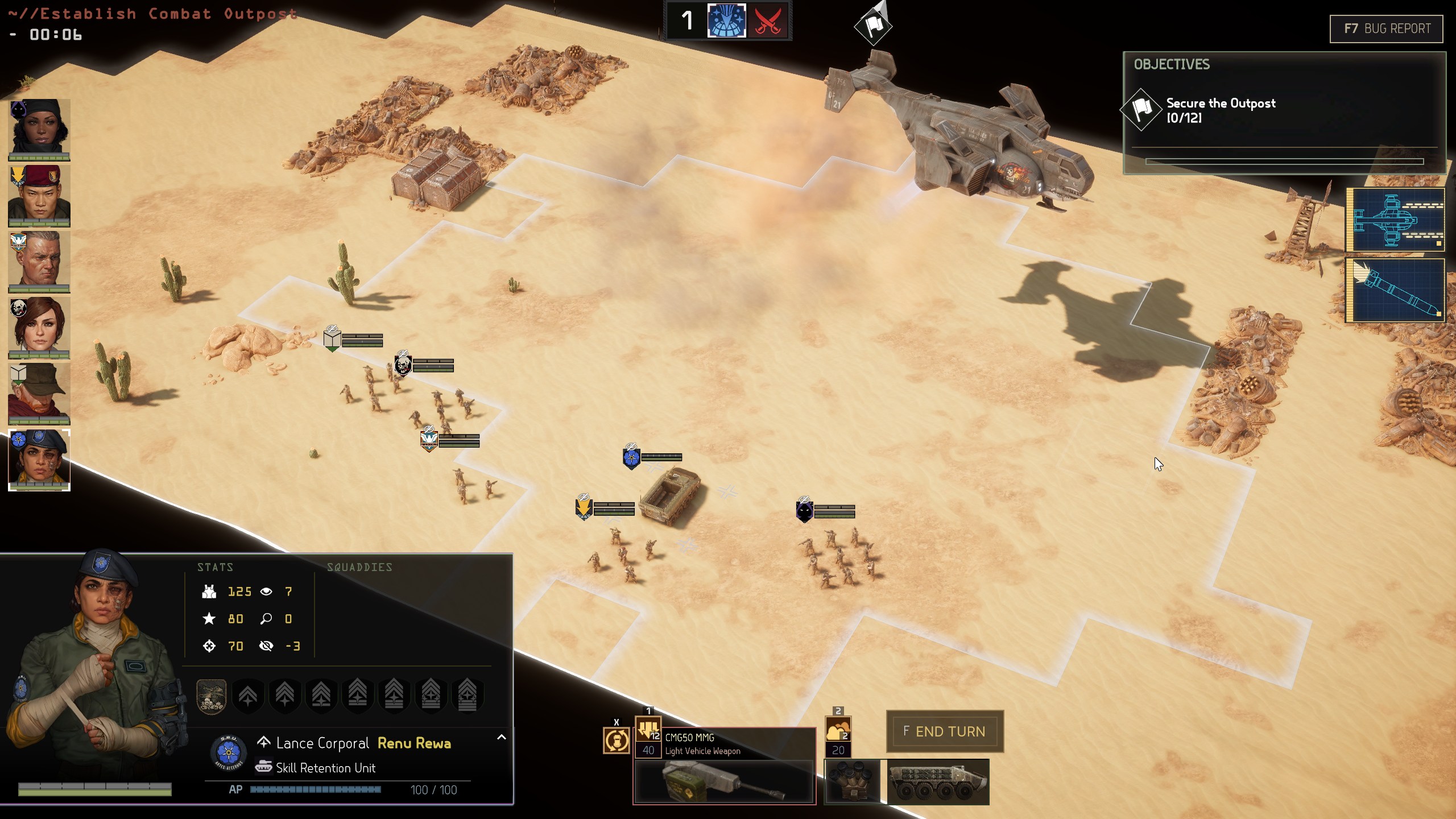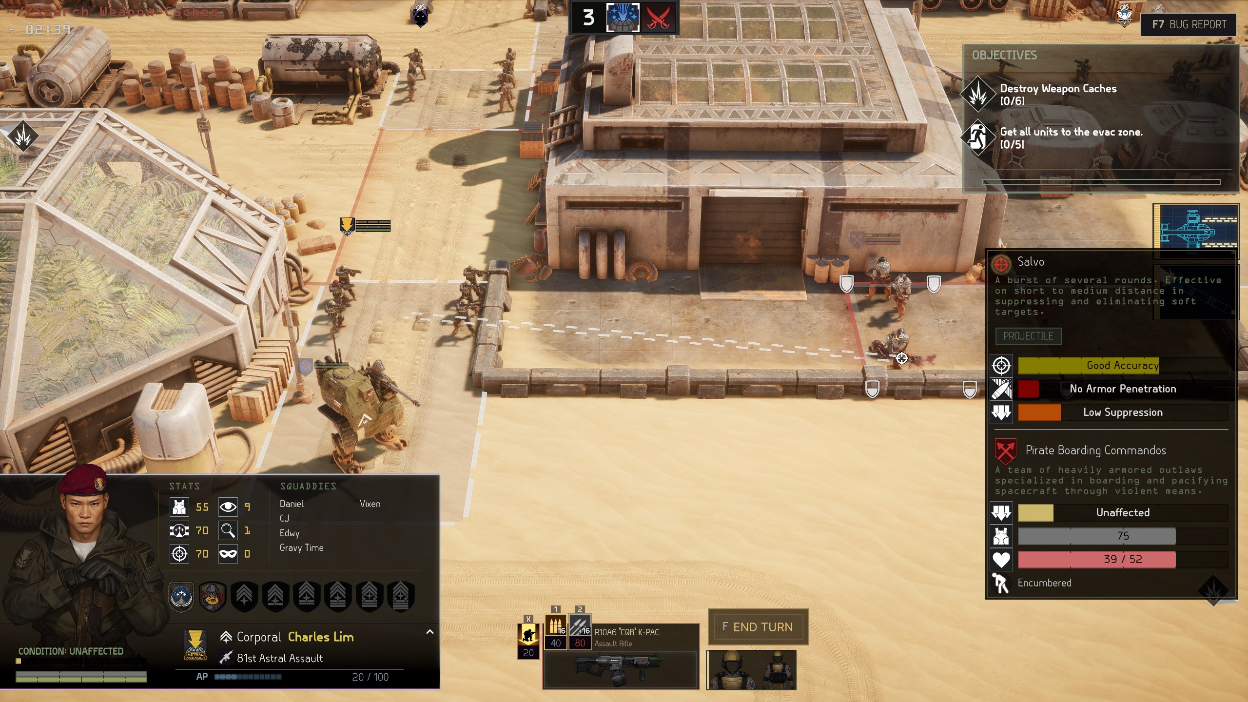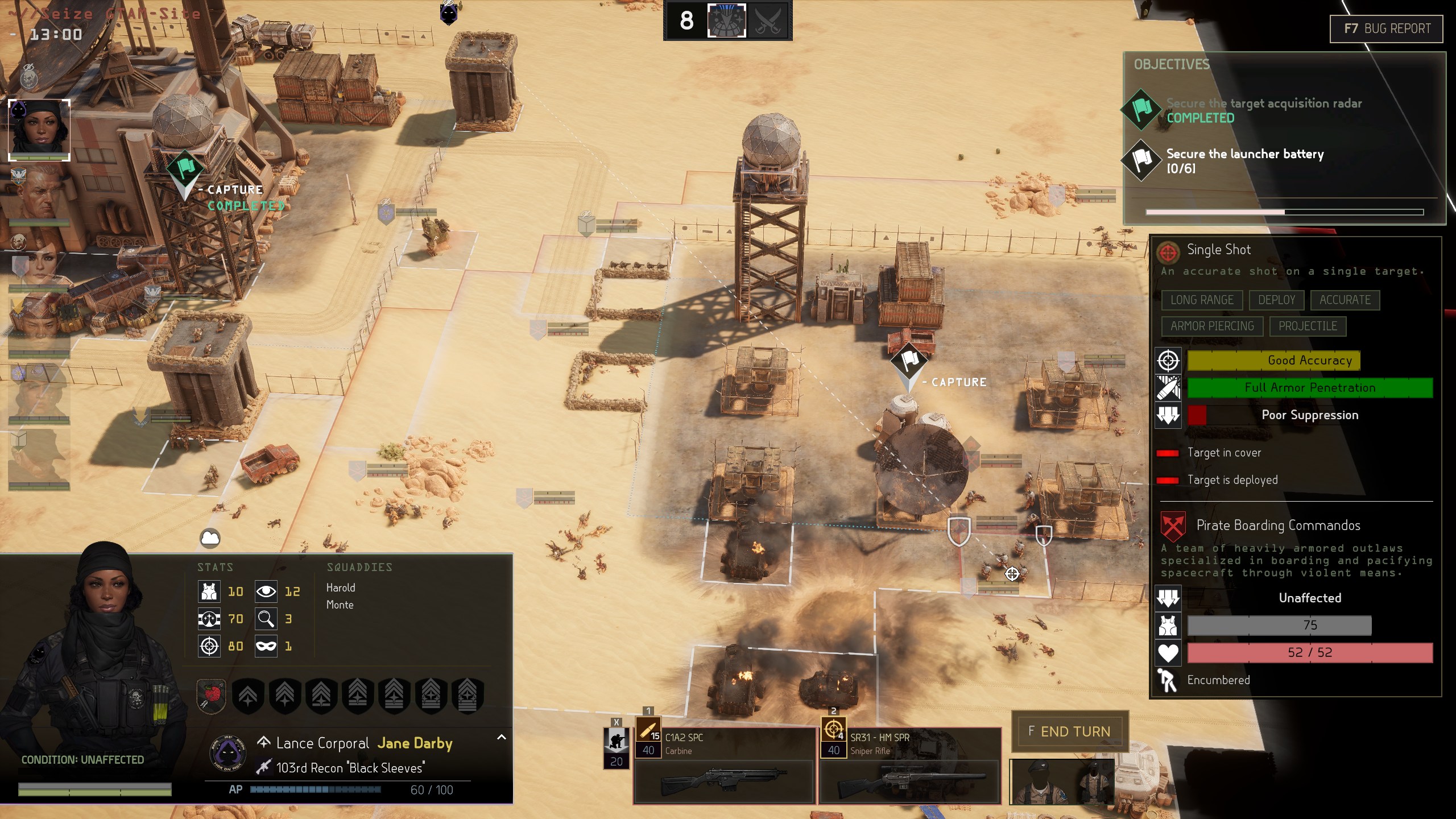 The combination of mission objectives, terrain, and enemy composition shapes a battle before it starts. The Secure Repair Depot mission calls for defending a facility against pirate attack. It provides a bonus that repairs your vehicles between missions during this operation. Take Out Bombmaker is a raid where the objective is to kill priority enemies and extract quickly. Rescue and Disengage entails relieving friendly forces under fire and covering their withdrawal. Some of their troops will join you for the remainder of the operation. Each mission calls for a different playstyle, loadout, and team composition. Everyone has value and this will only expand as they skill up.