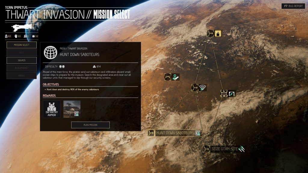 more planning. Pre-mission planning is inspired by 40K list-building (the devs include avowed 40K fans) and is familiar to anyone who spent the 2010s building elaborate lists in BattleScribe. No tactics game is complete without a pre-mission screen. But there's a twist: intel. Have any other