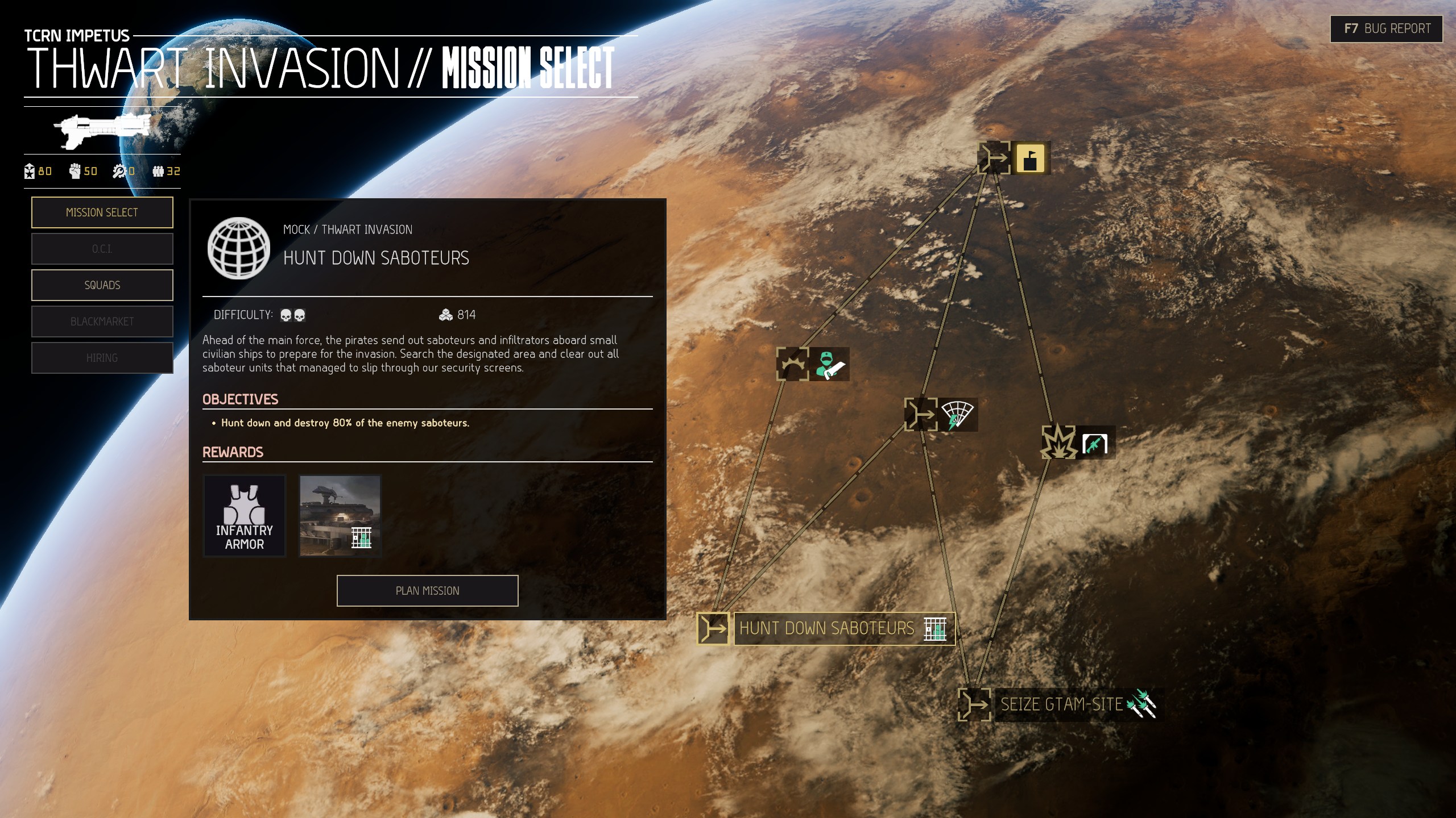 Menace is a chain of linked missions combined into an operation with an overarching goal. The mission objectives and rewards in a given operation vary. Some rewards are tactical and only apply to this operation (extra resource drops, friendly field support). Others are permanent fixtures that stay with you. Each mission must be completed to succeed in the operation.