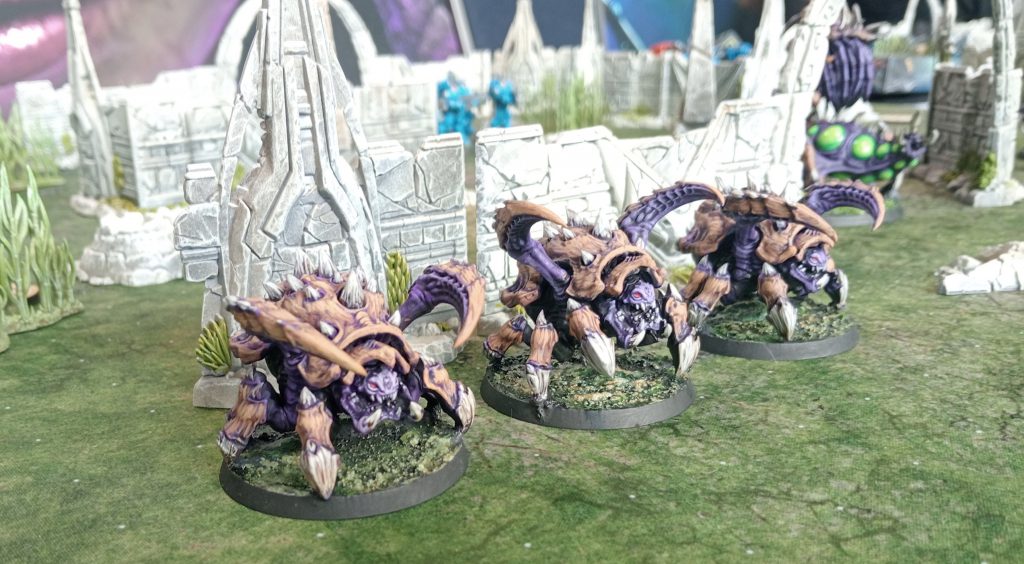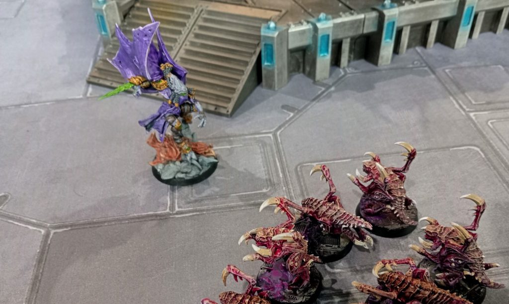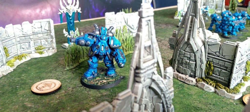 The terrain is quite lovely; it has a strong ‘Age of Sigmar/Warcry’ feel to it. Lots of thin L-shaped walls done in plastic, some statues of long forgotten Protoss heroes lying half submerged in the ground. The aesthetic is entirely in keeping with the environmental assets you may remember from StarCraft and I’m absolutely here for it. Slam dunk here, Archon Studio.