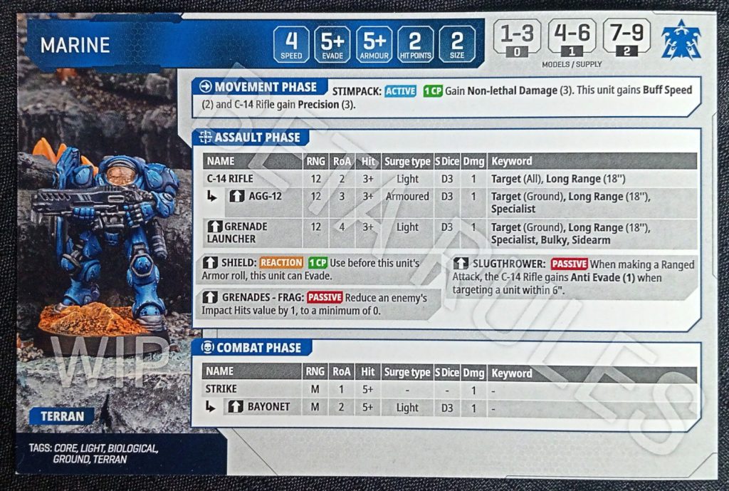 Scoring: This is a game about objectives. In order to see who controls/scores an objective, you count the amount of 'Supply' within a certain radius of it. If you check the Marine stat card above, you'll see that in the top right of the card there's a tracker for how much supply a Marine squad is worth. This drops as the unit takes casualties. Seems fair.