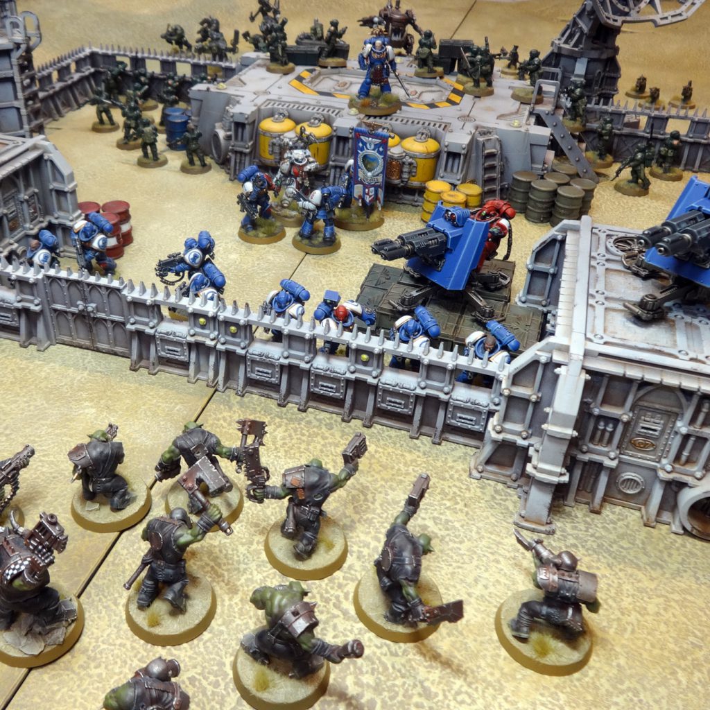 Cobalt Scions Space Marines defend a missile silo against Goff Orks. Credit: Charlie Brassley