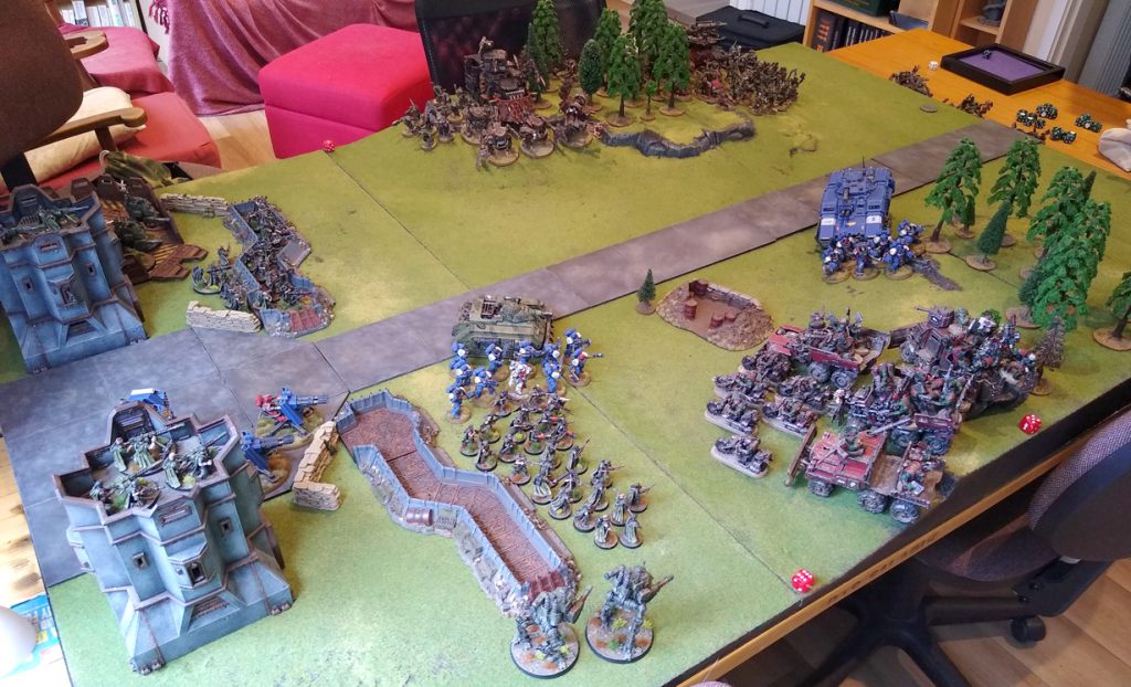The mission is designed to be skirmish-adjacent, with the Players limited to a combined total of 1,000 points. At that small scale, the Orks won’t have all that many guns to shoot it with, so it has to be fragile enough that the mission is challenging. But there could perhaps be an argument for giving the mission two scales to fight at: for up to 1,000 points’ worth of Player forces, you get the fragile little emplacement. For 2,000 points of Player forces, the objective gets more resilient, gaining a 3+ save and 17 wounds (locking it out of being destroyed by 4 wounding hits from the souped-up damage 4 rokkits you encounter in this mode). I wouldn’t want to just sling this new option into the rules without playtesting it first, but I’ll keep it in mind, and would be interested to hear from anyone who gives it a try for science. Regardless, it's good food for thought. I'll try to do some testing and make a decision before the release of V1, so thank you to that playtester!