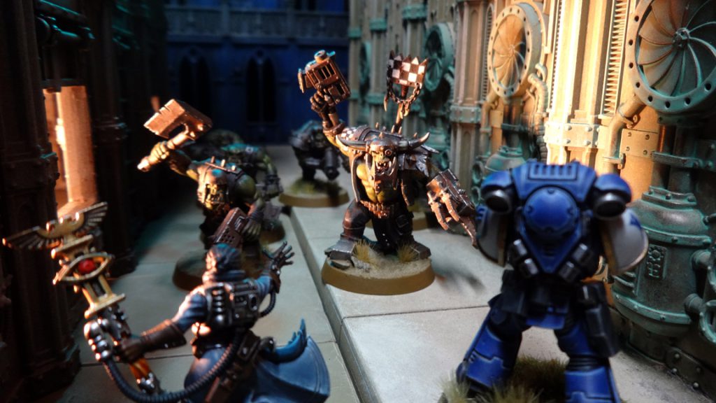 A Primaris Psyker and an Intercessor face an Ork charge. Credit: Charlie Brassley