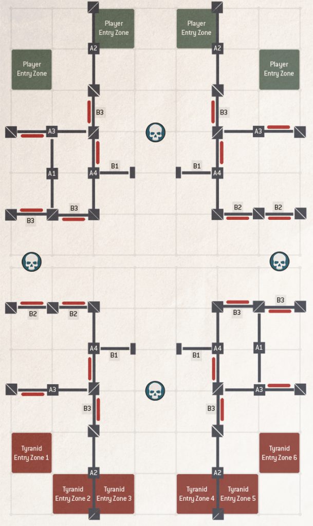 Arks of Omen: Abaddon. The map itself is almost exactly the same as the official one, but for the addition of two extra spawn zones so that it's easy to figure out where respawning Tyranids should deploy. The mission itself is also somewhat adjusted, and forces the players to gain full domination of the map over the Tyranids, which