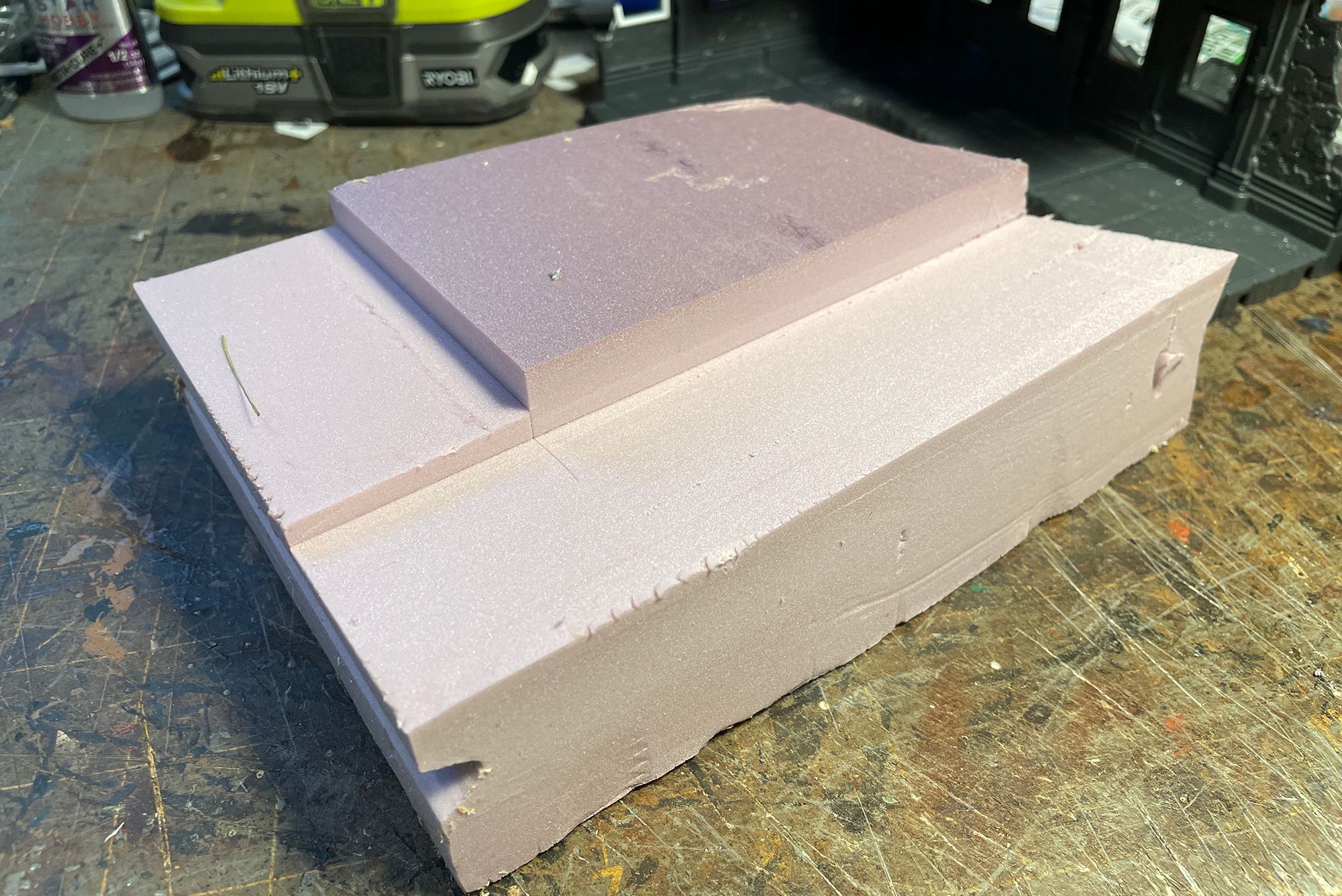 Once that was all set and glued together I grabbed some two-inch insulation board and cut it down to the rough size I needed with a box cutter. Insulation board is readily available from any home improvement store or, if that's not convenient, you can easily order small sheets of it online. It's a versatile hobby supply that, the more you work with terrain, the more you appreciate.