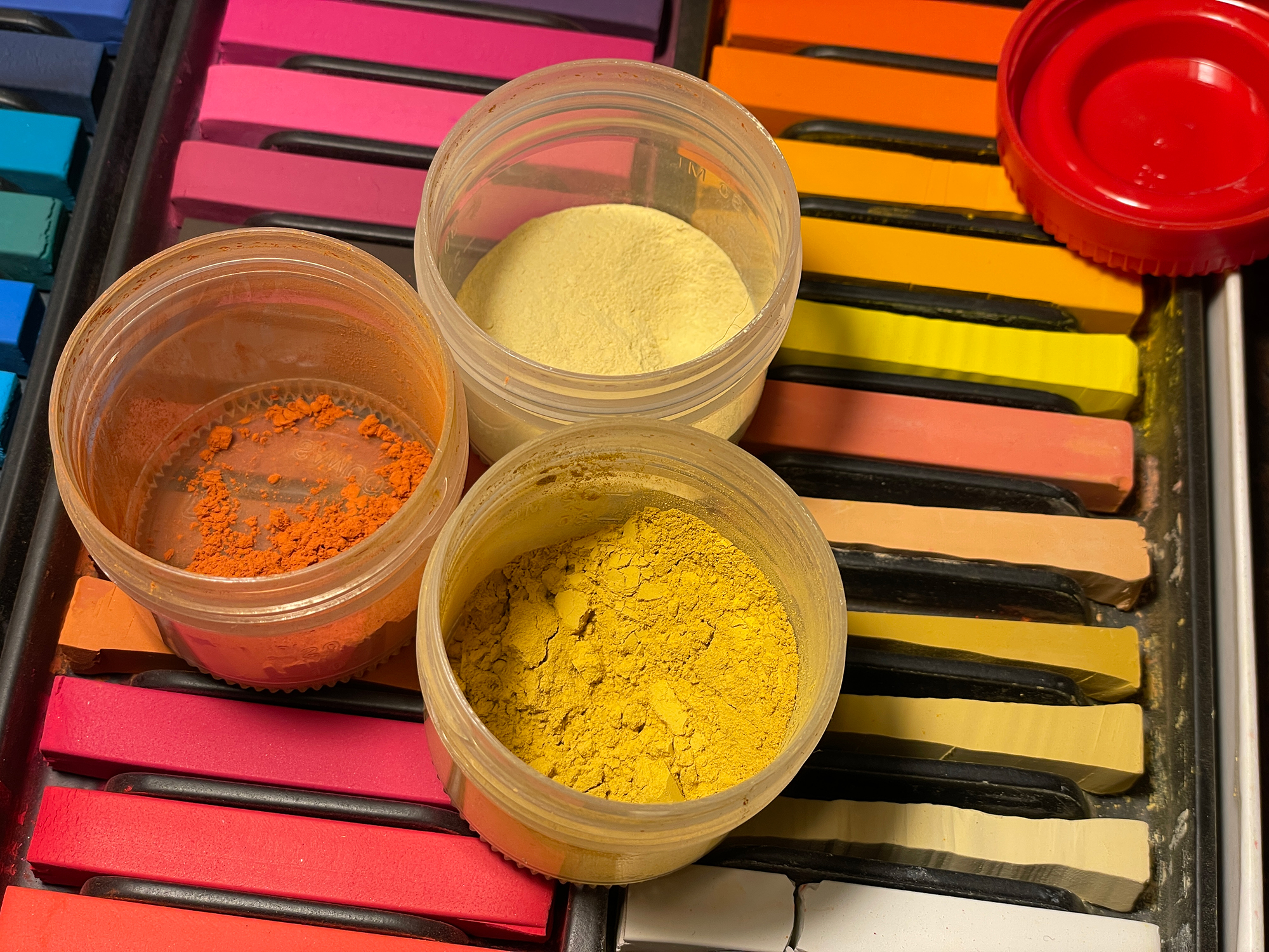 If you don't want to go to this effort, lots of company sell pigment powders by the jar, and you only need a couple colors. But I recommend at least looking at sets of artist pigments. They're significantly cheaper than you'd expect. You can get a full set for the cost of just 2 or 3 jars of pigment powders, and the full set will give you get a massive variety of colors to work with.