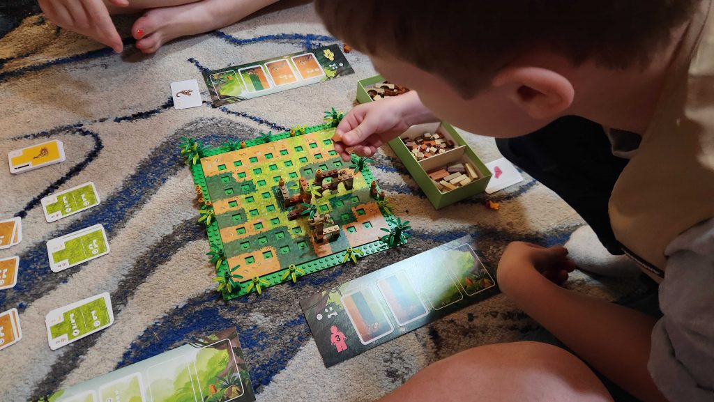 Overall, this is a pretty solid game. There's enough strategy in determining how you want to set up your brick economy and choosing points vs. bricks to keep the game plenty interesting for adults, while kids will appreciate the tactile feeling of building and using pieces like the Monkey or bird to ruin another player's plans. It's recommended for children ages 10+ but honestly I think you could go as low as 7-8 on this one. My son is 9 and he had a blast with it.