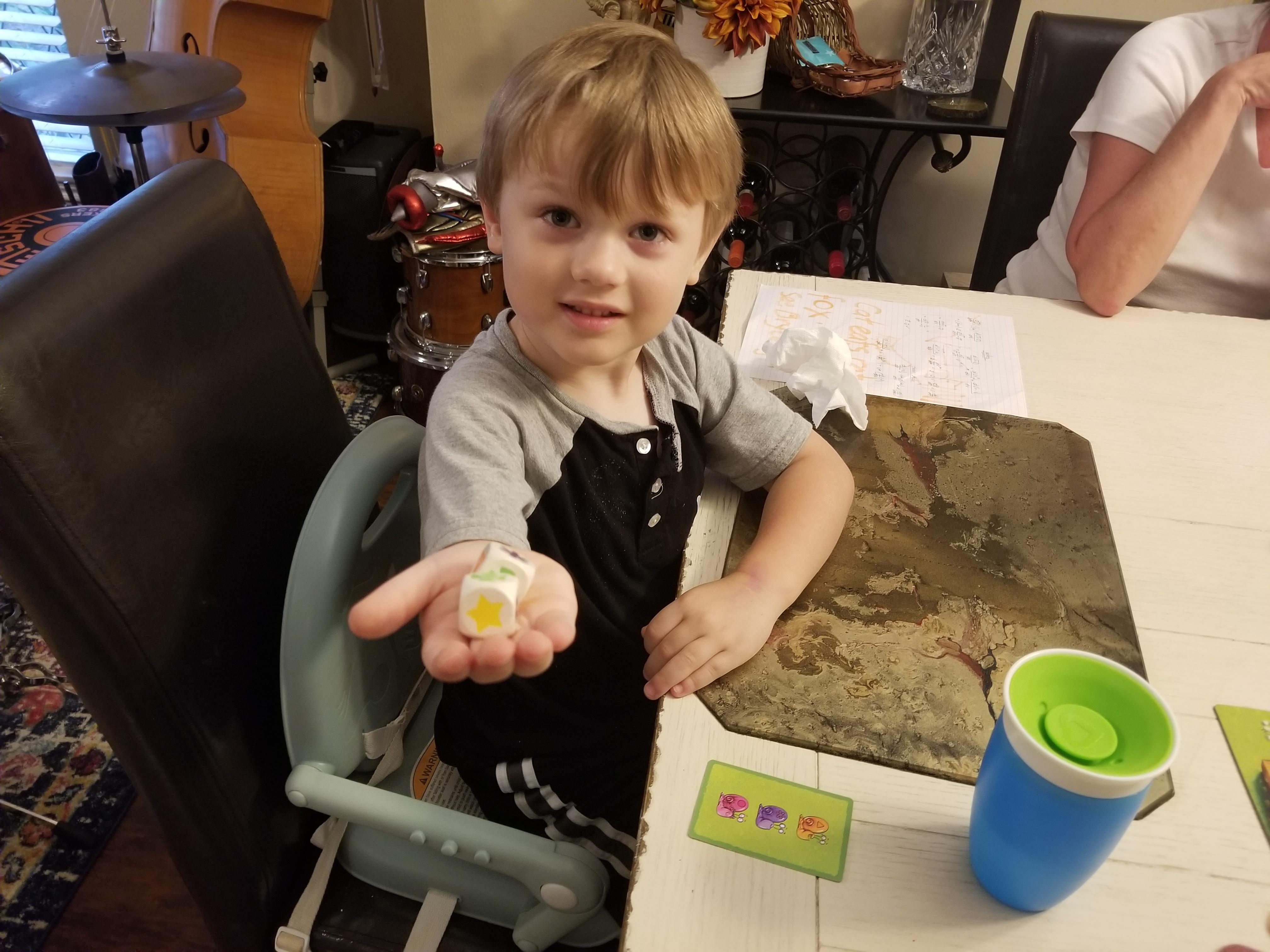 It's been a while since I wrote about buying and playing a new board game with my (now) five year-old son; we've been playing a lot of Rhino Hero Super Battle and getting into scavenger hunts - but that's a future article. He's learning to read at the moment, and that opens up all kinds of new avenues for fun gaming, but right now we're still mostly at sounds and simple, common words. That leaves us in a weird sort of limbo where we're trying to find games that still don't really require reading but also are fun and engaging enough to play that he won't get bored with them too quickly.