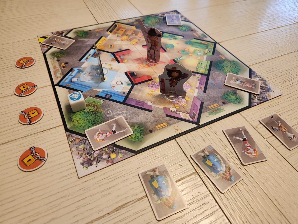 Pandemic-like tension between clearing rooms of zombies and moving to the outer spaces to close gates needed to win. If a room ever gets 3+ zombies on it players can no longer interact with it or move through it so winning at that point becomes a race against time to avoid running out of zombies or being locked out of part of the board. It only took a game or so to get the hang of for my son, and games took around 20 minutes at this point.