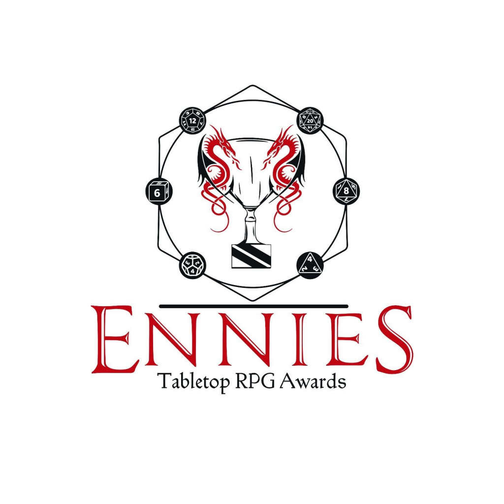 According to the official website for the awards, “The ENNIE Awards (the “ENNIES”) are an annual fan-based celebration of excellence in tabletop roleplaying gaming. The ENNIES give game designers, writers and artists the recognition they deserve. It is a peoples’ choice award, and the final winners are voted upon online by the gaming public.”. Born from the EN World forums in 2001 and hosted annually at Gencon, the ENNIES allow for TTRPG publishers to submit their products for consideration by a judging panel, who then create multiple categories with several nominees each for the public to vote on.