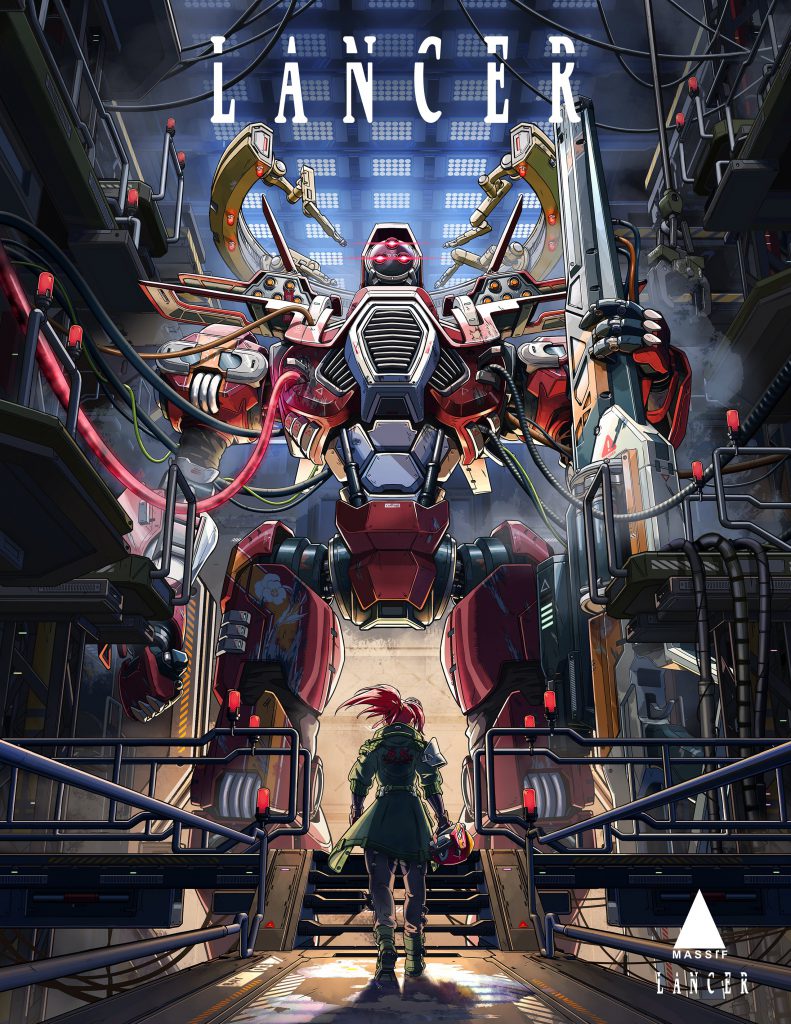 Lancer superfans can order a copy of the core rulebook directly from Massif to get an alternate cover art copy of the rulebook, drawn by Peyton Gee. The alternate art features a pilot walking towards their mech, docked in a hangar and ready for battle, and the entire piece radiates with Tengen Toppa Gurren Lagann vibes. Which is, to say, it rips.