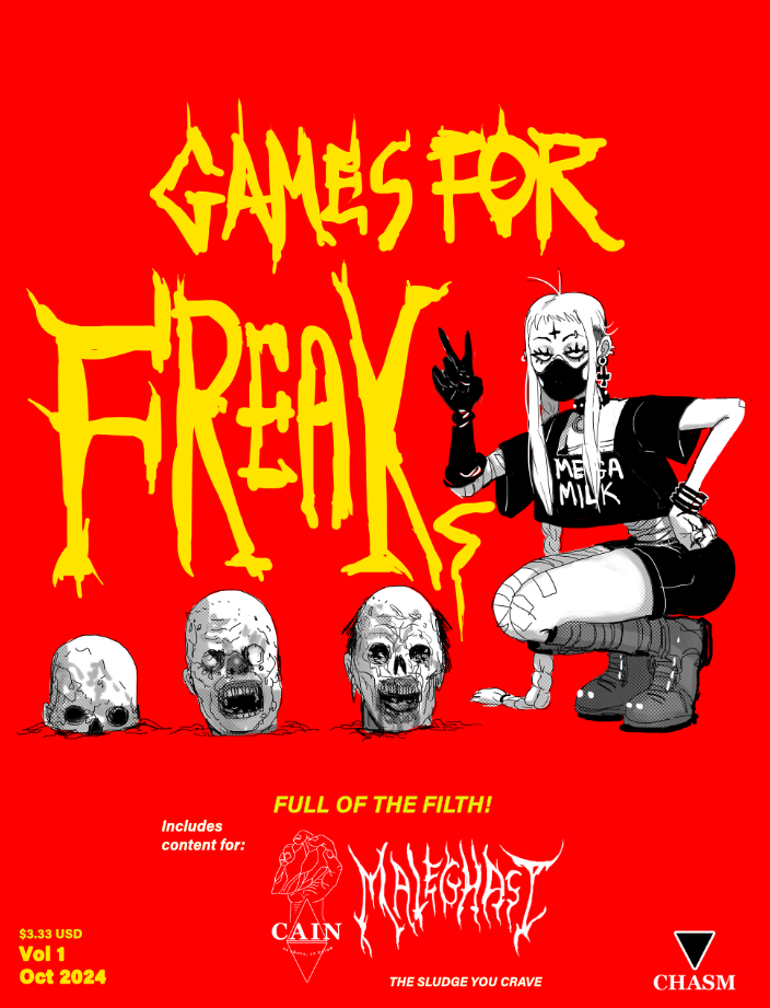 Games for Freaks, as well as CAIN and Maleghast, are available on Tom Bloom’s Itch.io page.