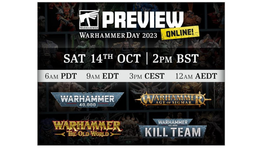 The preview event will be held on the Warhammer TV twitch channel, and will begin 2pm BST, 6pm PDT, 9am EST, 3pm CEST, and finally 12am AEDT.