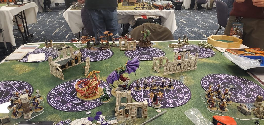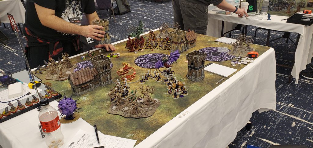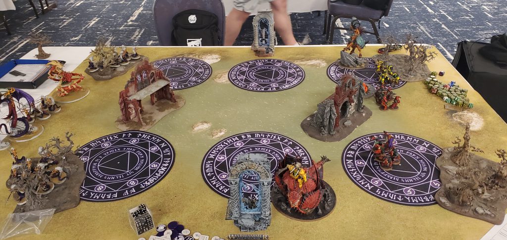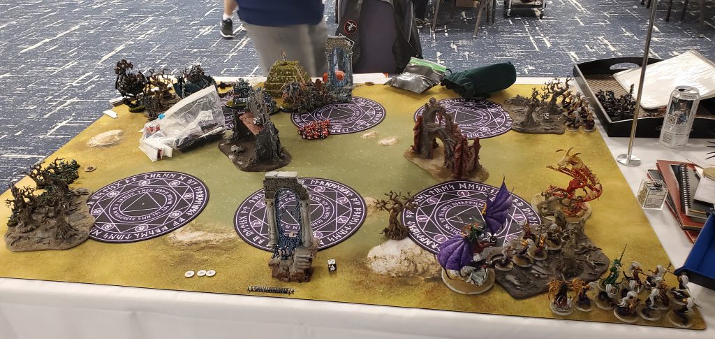 We traded blows back and forth and grinded each other out. I think the match was over round 3 when he won the roll off and while I managed to remove everything on the field but his general, his contagion points removed everything. Which left him with 2 turns to make up the major point losses he took in the first 3 rounds by summoning some Nurglings to steal a point and get a narrow win. Brutal, but Victor was a good sport and even bought me a beer. Considering I managed to hold out in a grind out against Nurgle spam, I can't be too mad. I should have just been more aggressive.