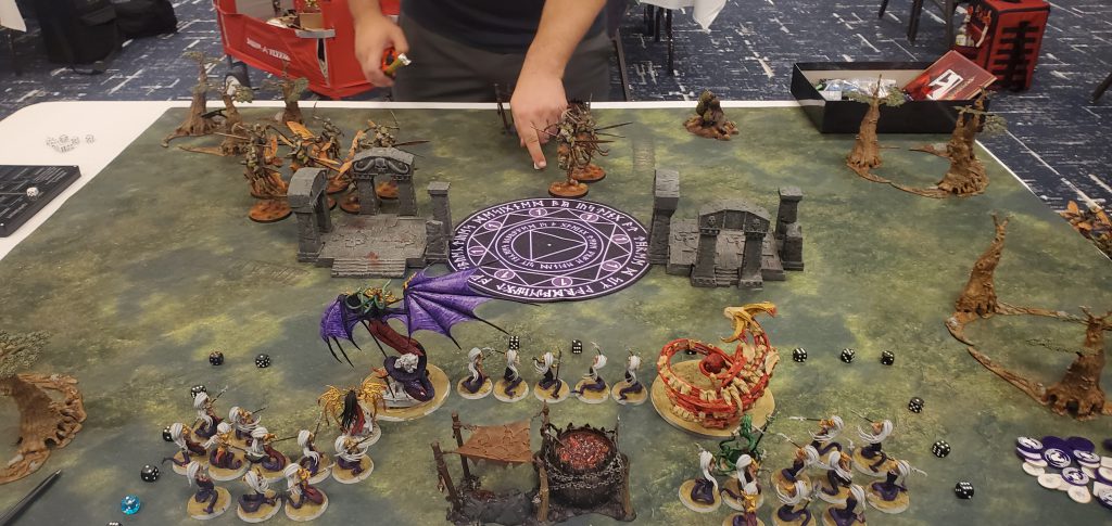 Raff actually fought Matt earlier in the GT, and I wasn't looking forward to this match because the teleportation favors Sylvaneth heavily. This was my second match where my opponent had one drop so I was thankful I also got it. I won the roll off, put mine down as far back as possible and let him put his stuff down. I, of course, gave it to him first.
