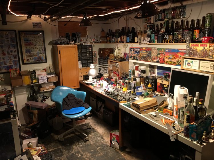 I've been fortunate to have dedicated hobby spaces for the last 10 or so years. When renting apartments we'd find places with 3-bedrooms and one would be used to contain my hobby stuff. When we bought our first house, I got half the basement and spent time semi-finishing it, building it out including a display cabinet built into a wall. It was a great space, despite the lack of headroom (I'm 6'4", so lots of ducking happened). It was around 270 sq ft and housed my collection and allowed for dedicated hobby and play space. It was a hard space to truly make nice, with a raw concrete floor, no extra space (read: closets), and no place to hide anything.