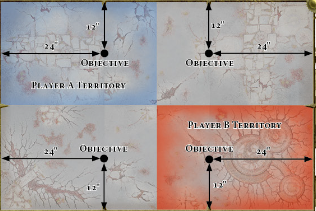 The number of locations the objectives can land has been simplified back to 3 locations in each territory which makes the chances of it landing on the other side from your army much lower.