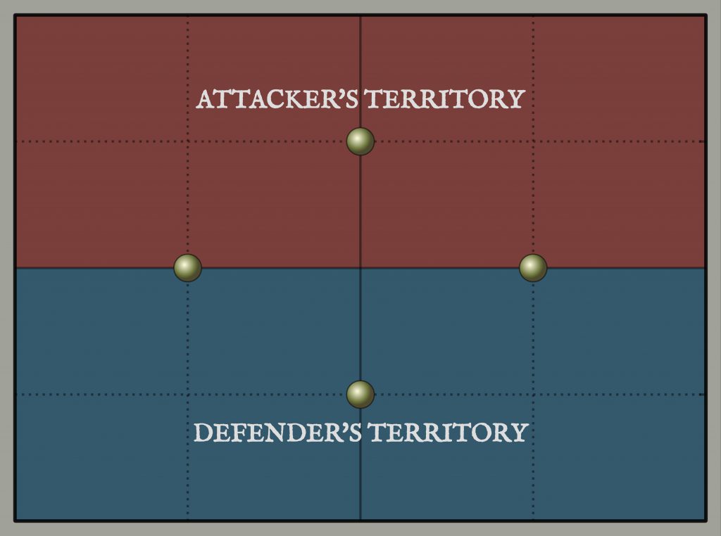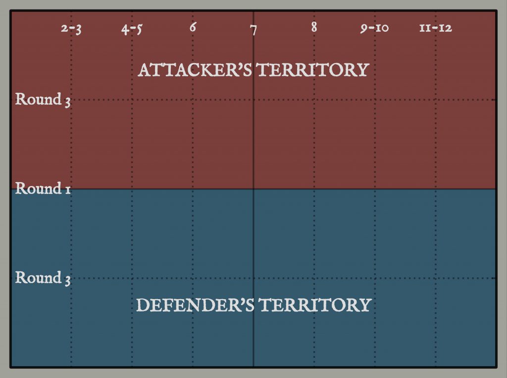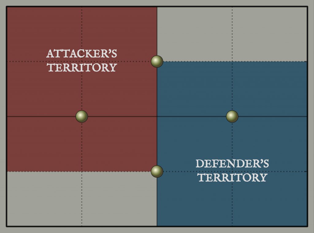 Identical to Border War for scoring purposes, holding your own is worth 1 point, each border objective is worth 2 points and your opponent's is worth 5. It does utilize a short edge deployment instead of a long edge, so armies will have to hike further up the field than they would in Border War.