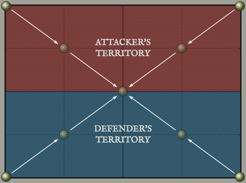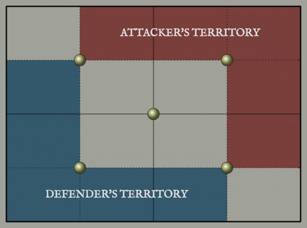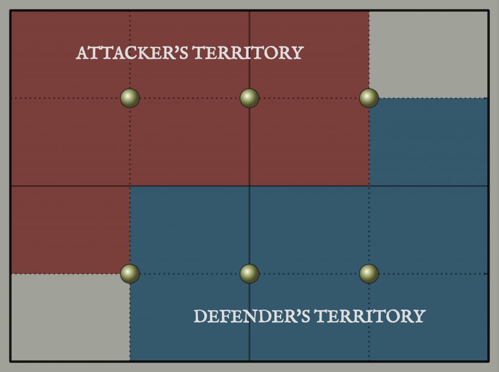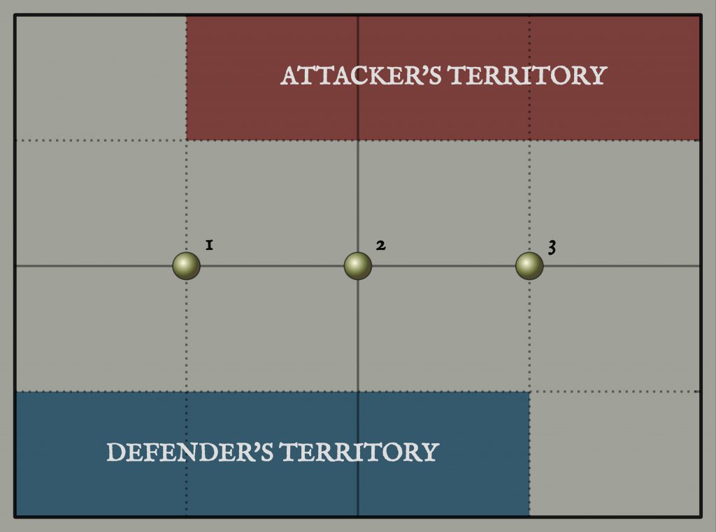 3 for holding one of the crosses. Do you go wide for the easier to grab flanks or push into your opponent's home territory to deny it?